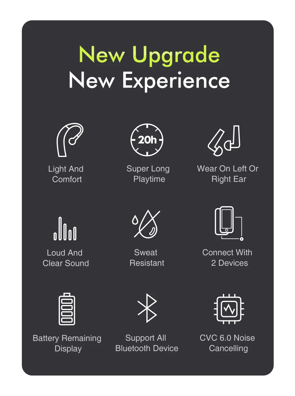 Качество соответствует описанию на сайте. Звук хороший, много лучше более дешевых вариантов подобных гарнитур. За ухом сидит удобно. Заряжается быстро. Проверить на сколько по времени хватает заряда пока не могу.