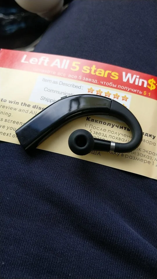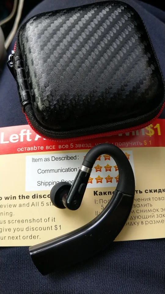 Наушник доехал до Москвы быстро. Подключается к смартфону быстро. Заряда хватает на 10 часов. Гнездо зарядки расположено удобно э, туда можно воткнуть магнитный переходник. Силиконовая амбушюра смотрит мимо ушного отверстия. Придется сделать из пластикового уголка для трубок полива растений уголок-переходник, чтобы амбушюра смотрела вверх под 45 градусов и входила в ушное отверстие. При ответе на звонок я подношу ладошку к щеке. Тогда образовывается своеобразный звуковой канал и собеседник хорошо меня слышит.