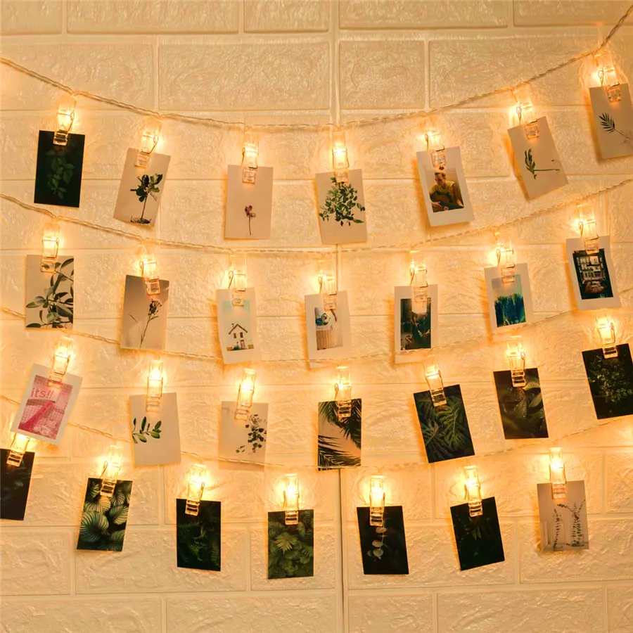 Светодиодная гирлянда с зажимами для фотографий, 1,5 м, 3 м, 4 м