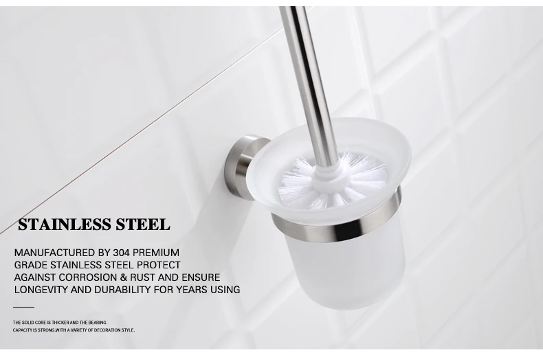 Особенности и характеристики:Держатель щетки для унитаза/туалетаМатериал: Прочная нержавеющая сталь SUS 304 со стеклянной чашкойИспользование: туалет/ванная комната/душевая комната/туалетОтделка: матовая поверхностьТип: аксессуары для ванной комнатыУстановка: НастенныйВключая все монтажные фитинги