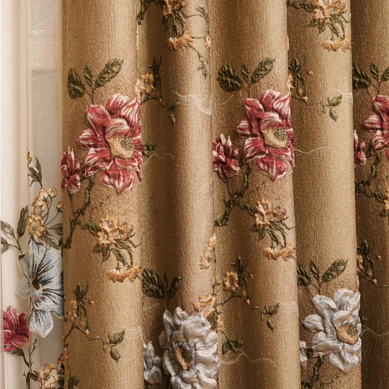 Шторы затемняющие в европейском стиле, шениль с вышивкой, вилла, бе...