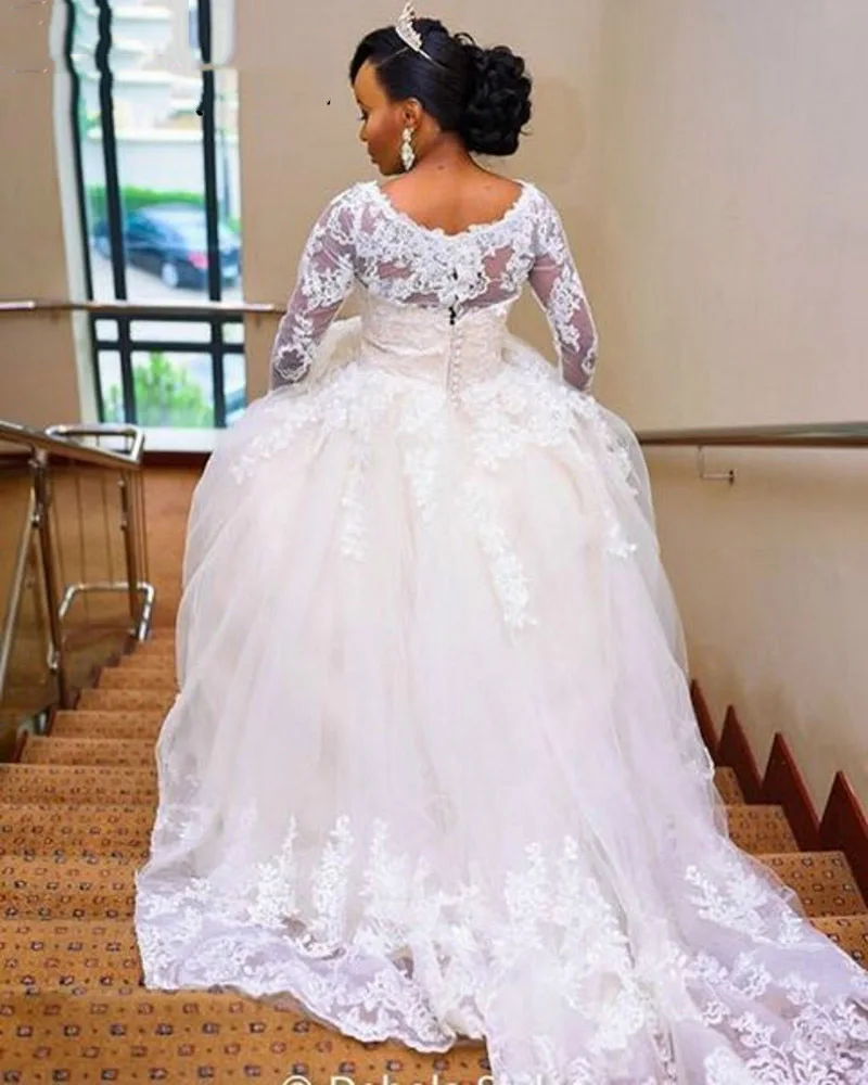 Кружевное Свадебное платье E JUE SHUNG, белое, с длинным рукавом