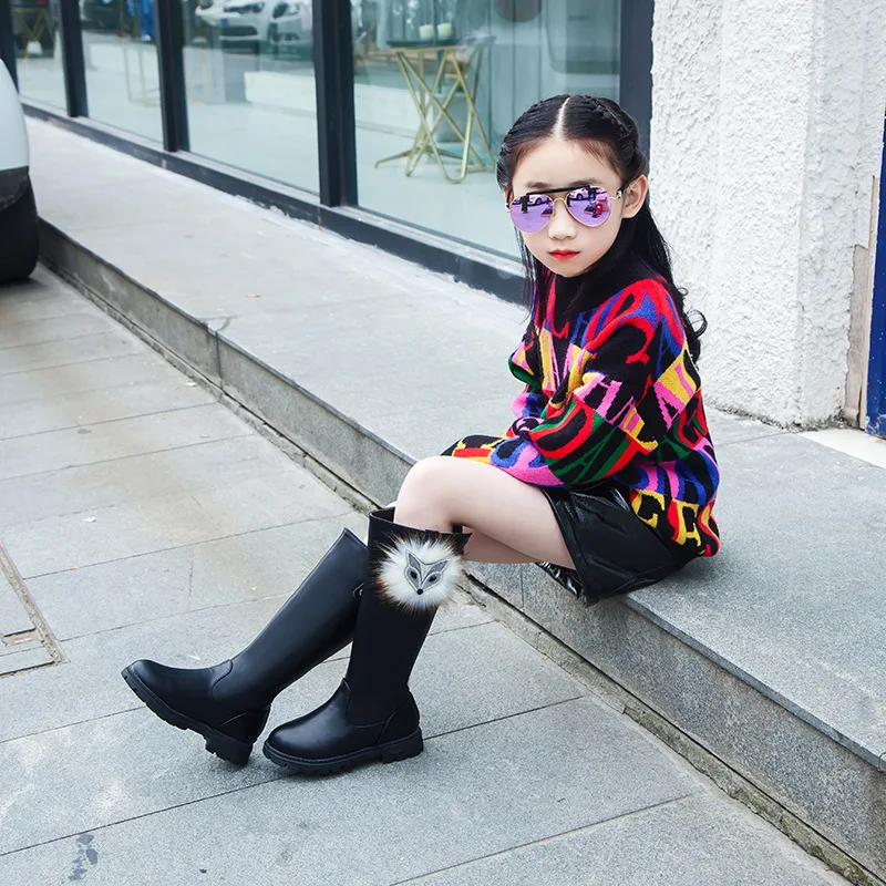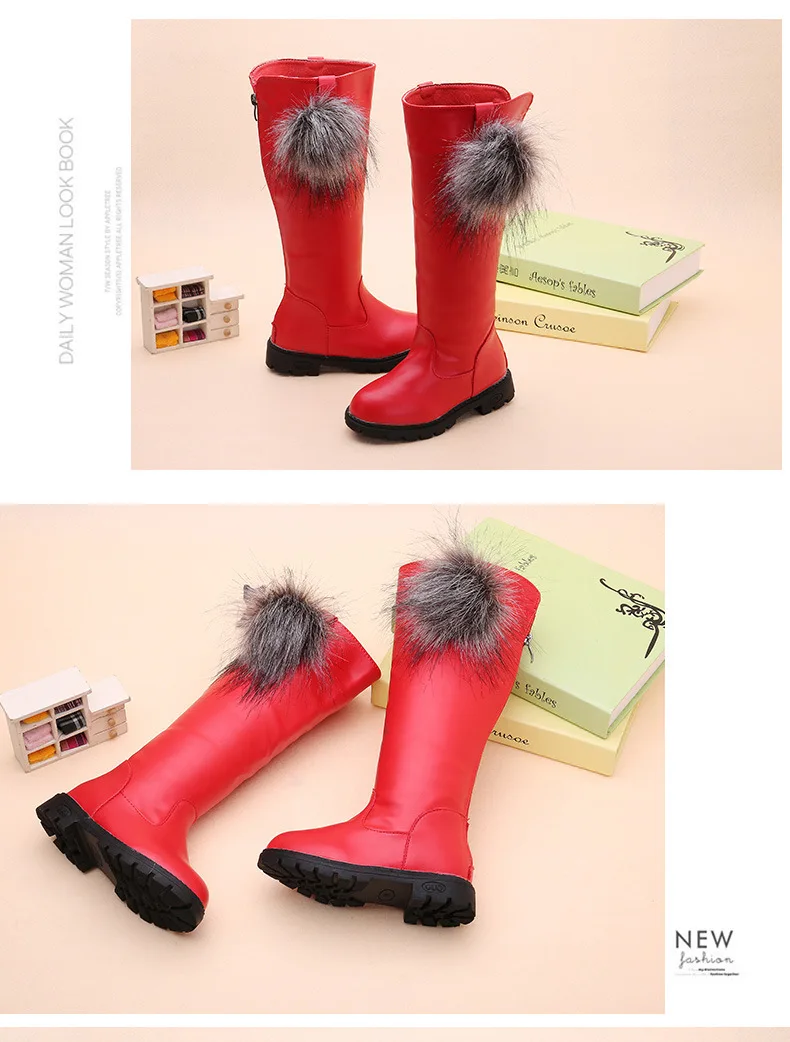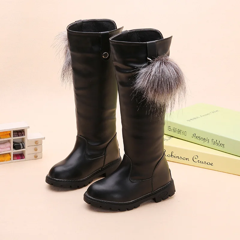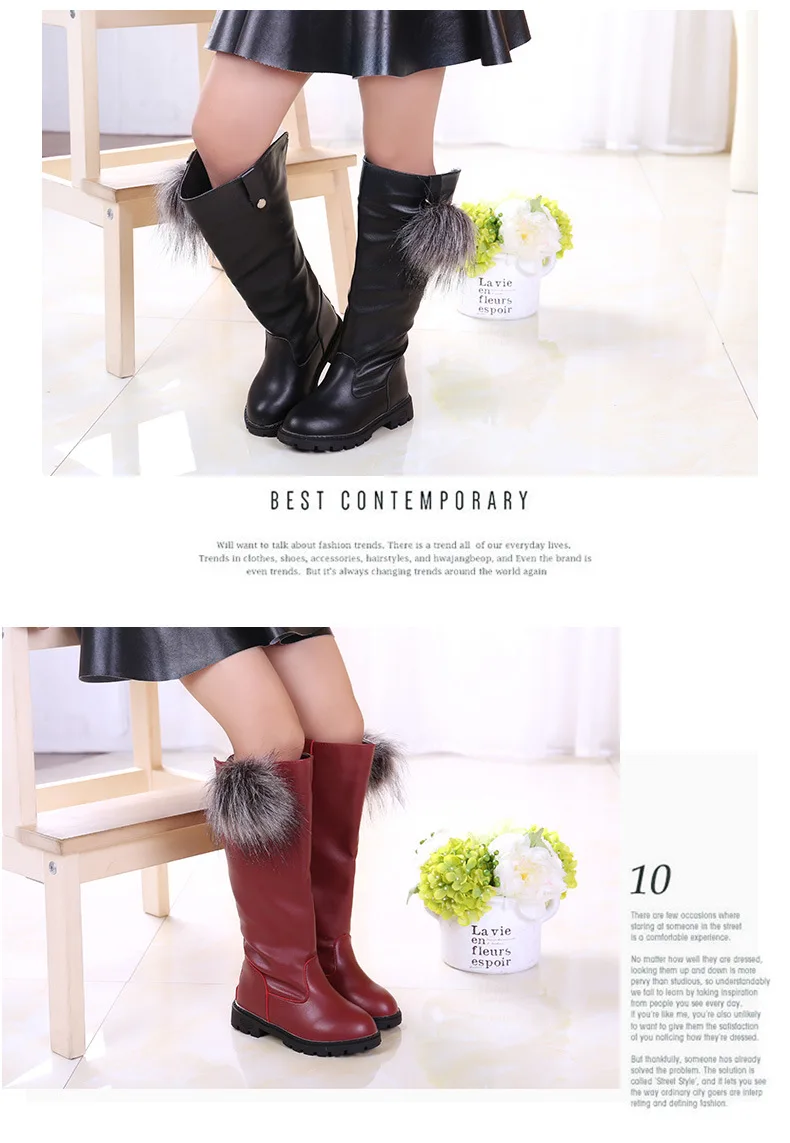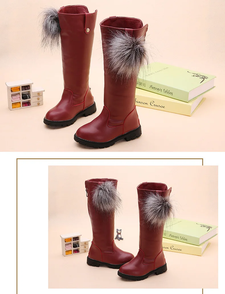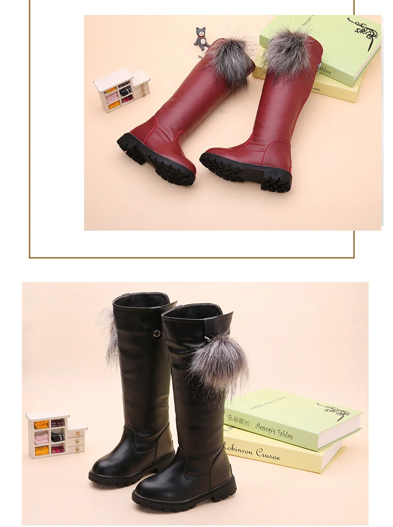 Кожаные сапоги с мехом для девочек, модные школьные зимние сапоги до колена принцессы, теплая обувь, детские резиновые мартинсы, Осень-зима