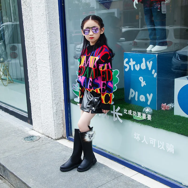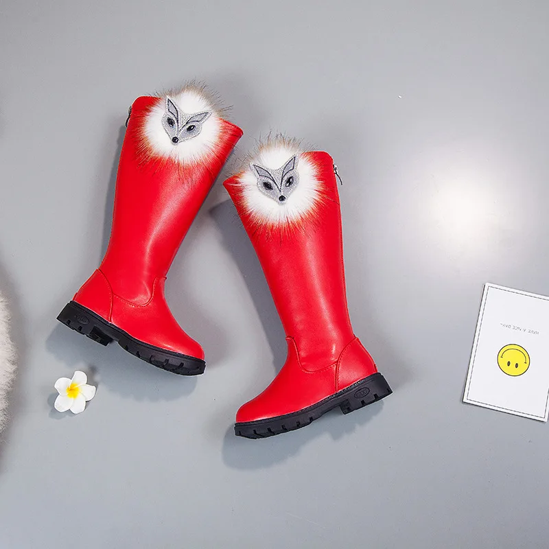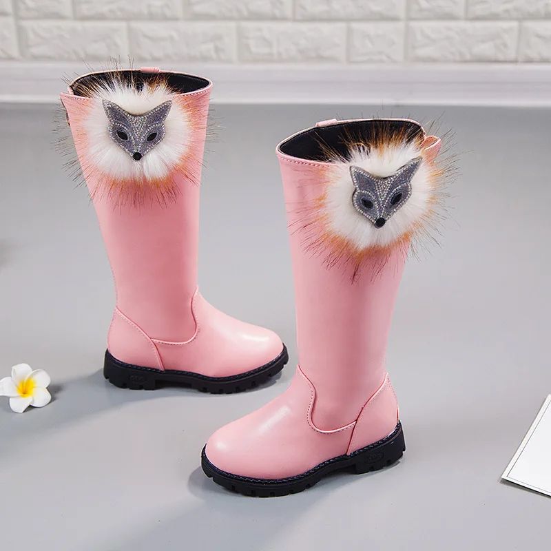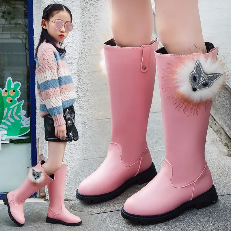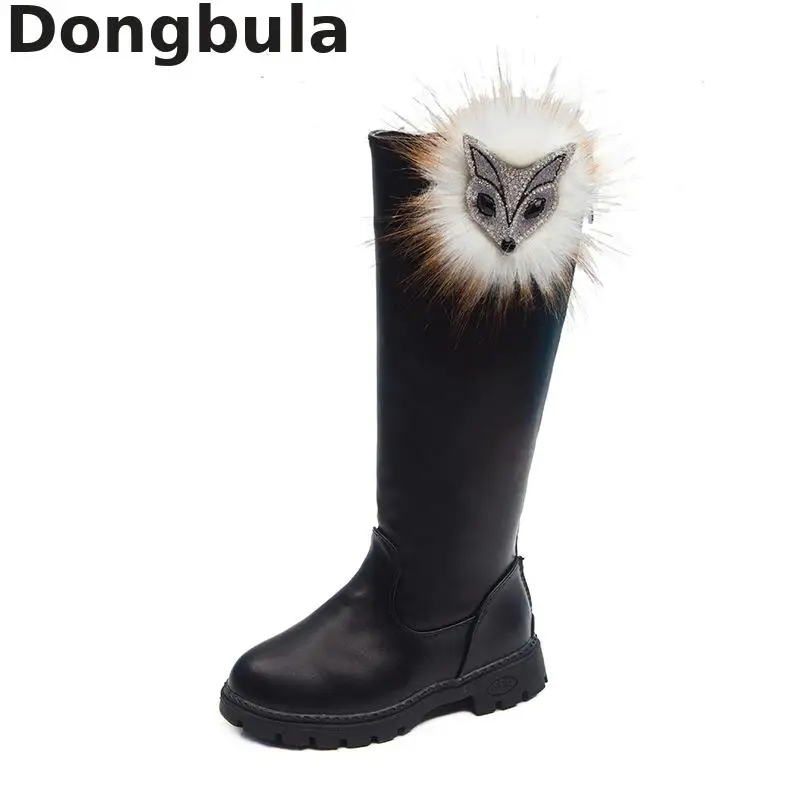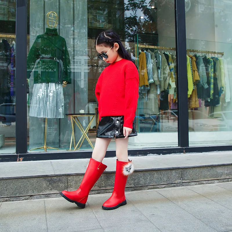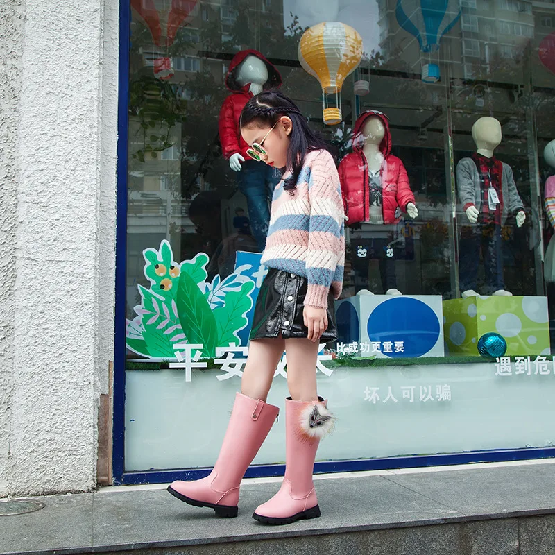 Кожаные сапоги с мехом для девочек, модные школьные зимние сапоги до колена принцессы, теплая обувь, детские резиновые мартинсы, Осень-зима