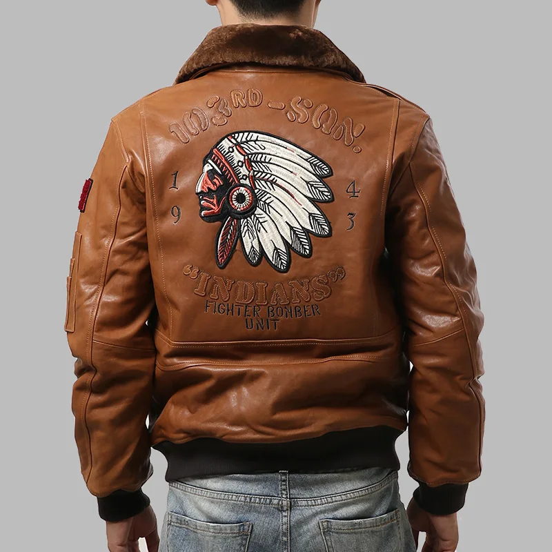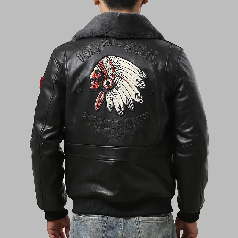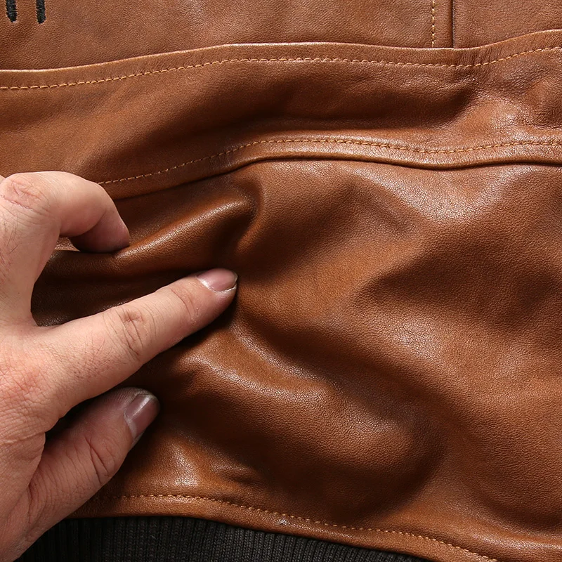 Куртка-бомбер из натуральной овечьей кожи, в стиле милитари