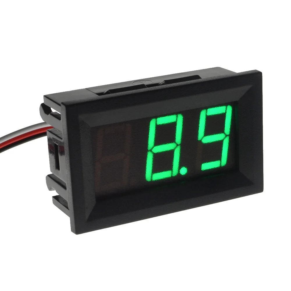 Новинка, 50 шт.Лот, 3 провода, красныйсинийзеленый, 0,56 дюйма, DC0-40V внешний источник питания, цифровой светодиодный дисплей, вольтметр с защитой от обратного хода