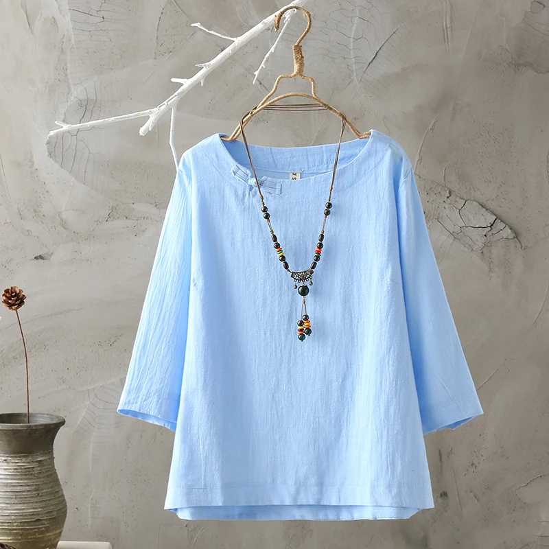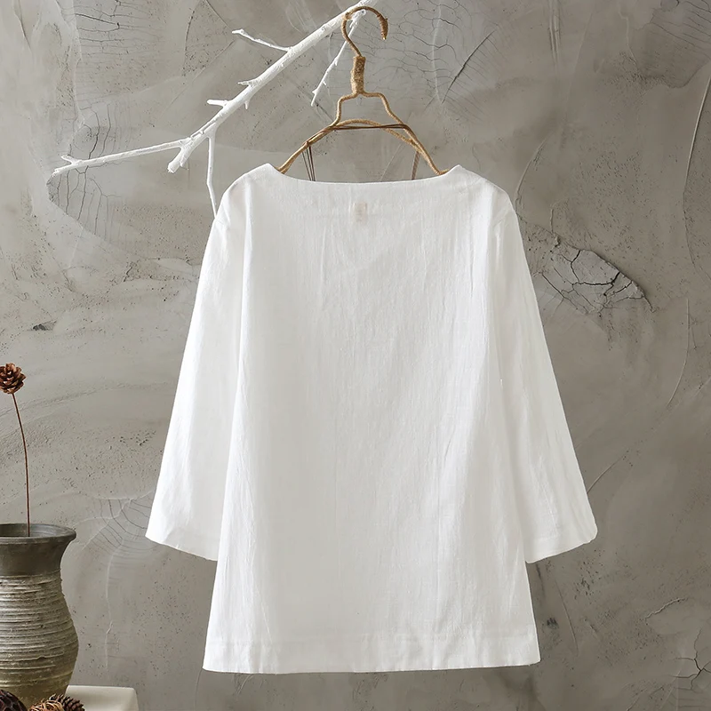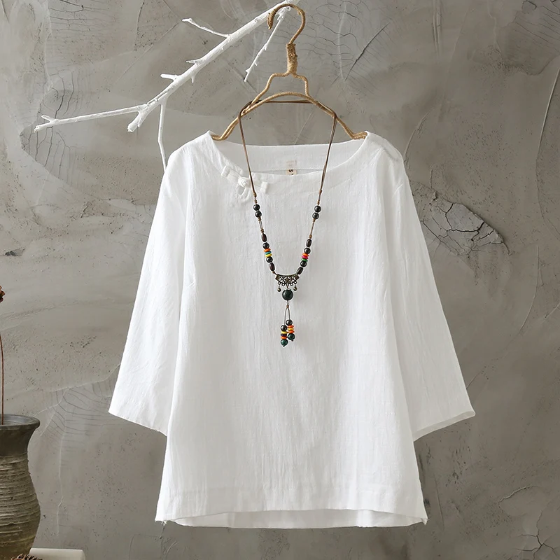 Элегантная белая блузка, женские хлопковые блузки, размера плюс, Женский Повседневный Топ с китайским воротником