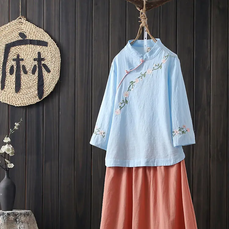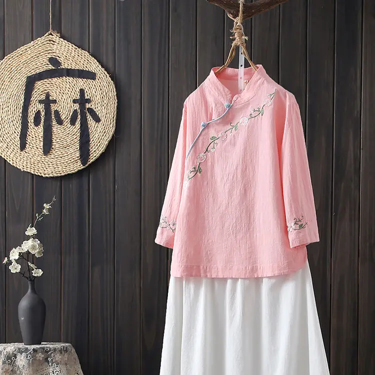 Женские блузки с цветочной вышивкой, однотонные белые хлопковые топы с рукавами размера плюс, 34