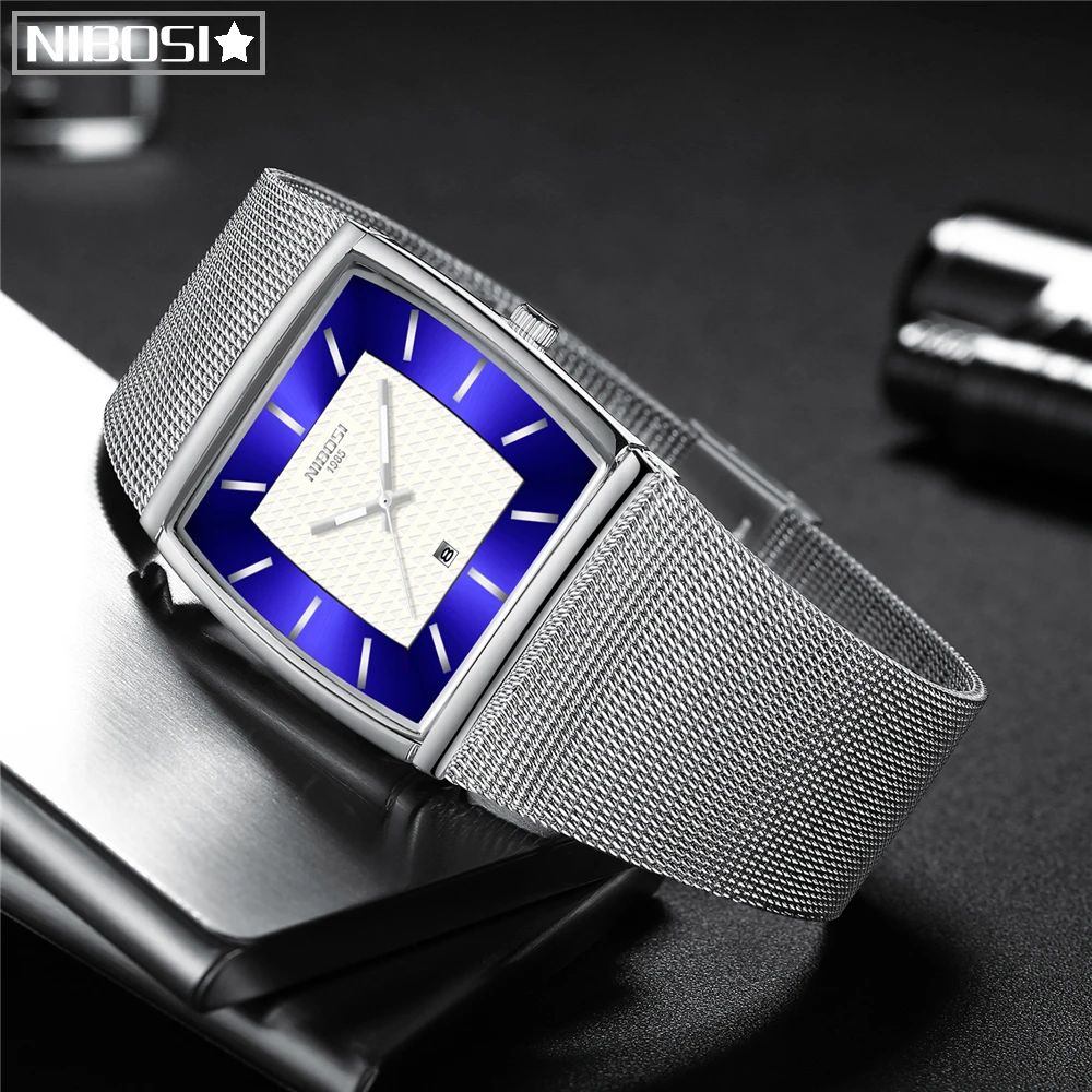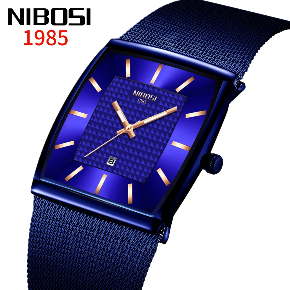 Синие квадратные часы-хронограф NIBOSI, спортивные мужские часы с индивидуальным дизайном, водонепроницаемые креативные часы, мужские наручные часы, мужские часы
