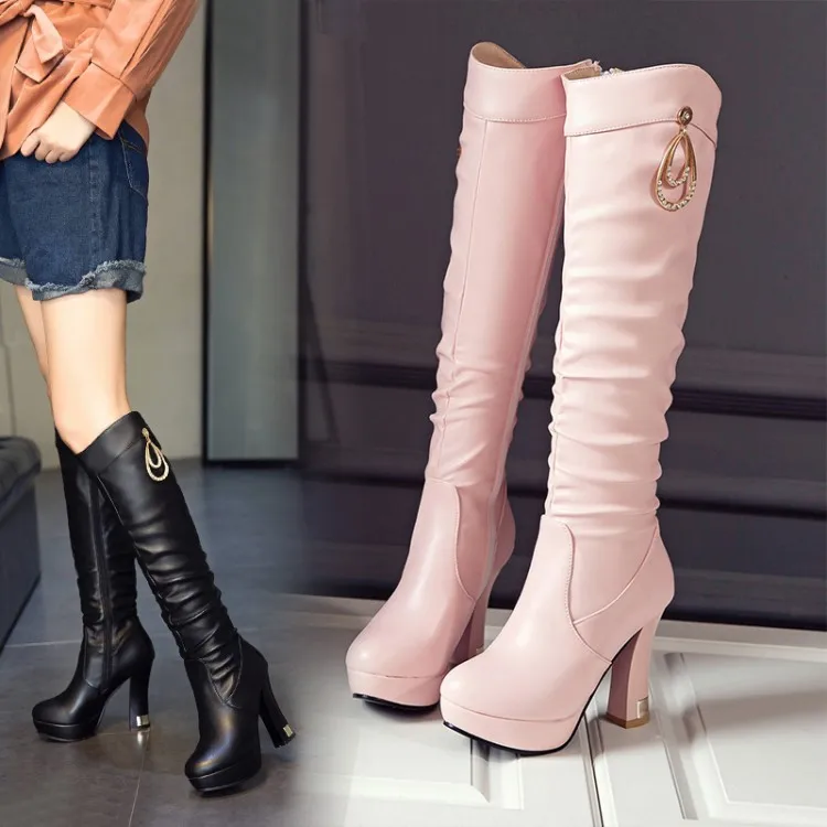 Женские сапоги выше колена, черные, белые, розовые сапоги с круглым...