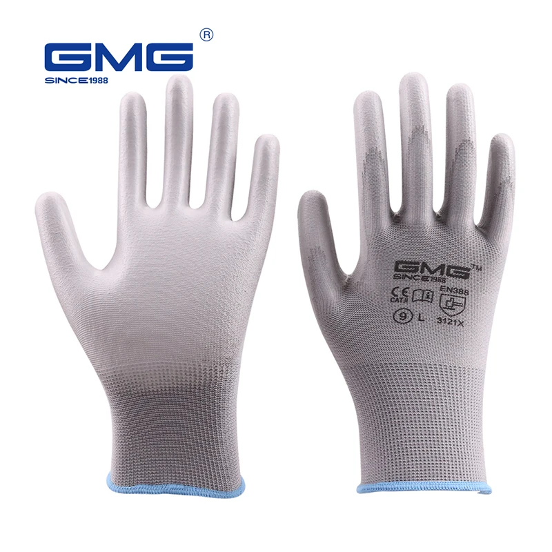 Рабочие защитные перчатки, 6 пар, GMG, серого цвета, из полиэстера, с серым полиуретановым покрытием, рабочие защитные перчатки, ручные перчатки для механика