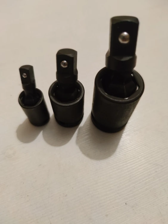 Отличные шарниры. Некрашеные, а вороненные. Хорошо садятся как на головку, так и на гайковёрт. Углы излома, около 16 градусов относительно продольной оси.