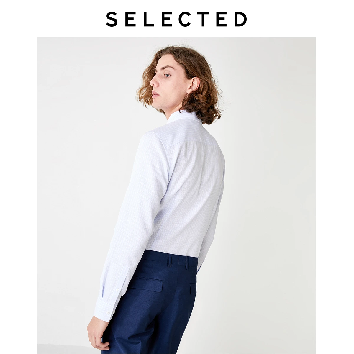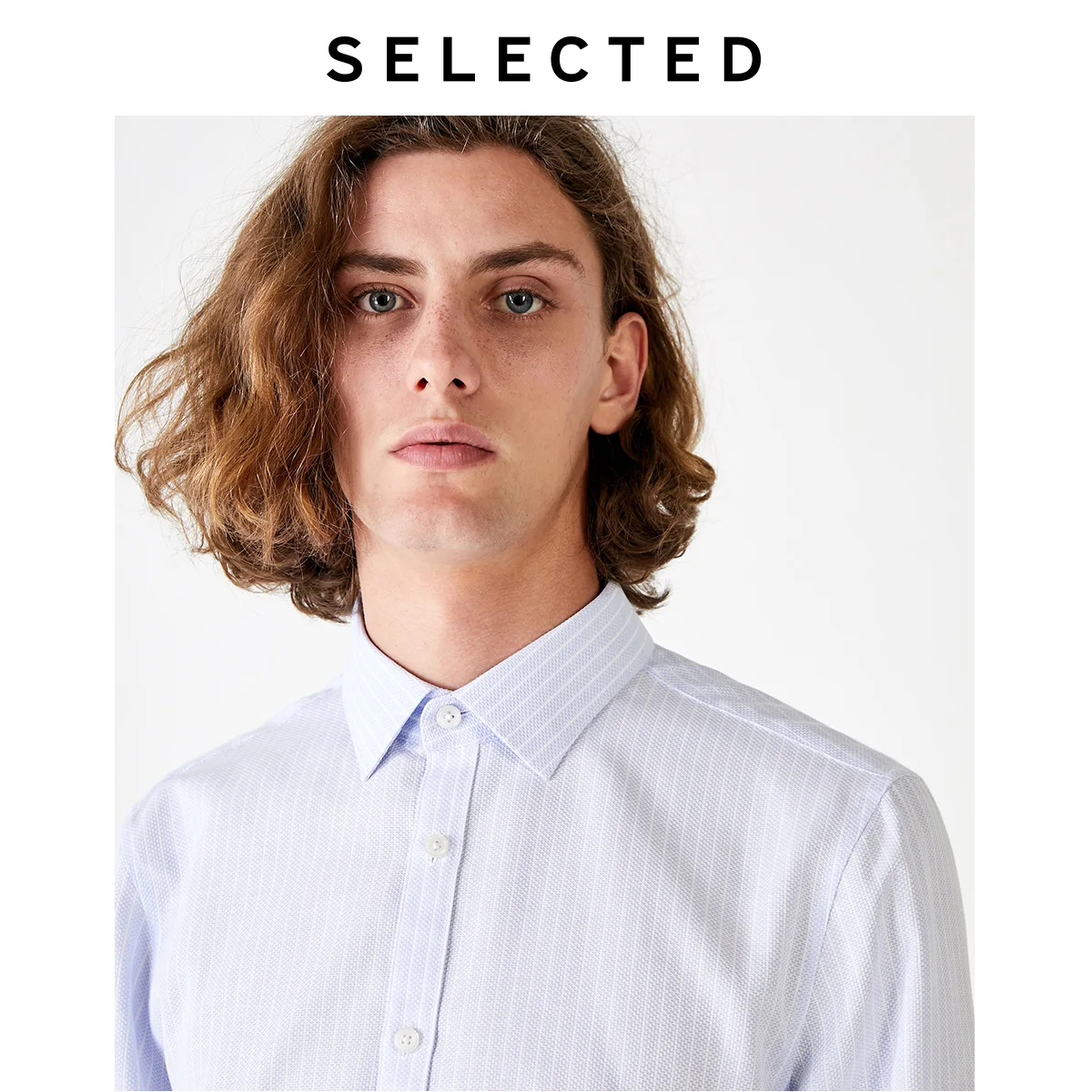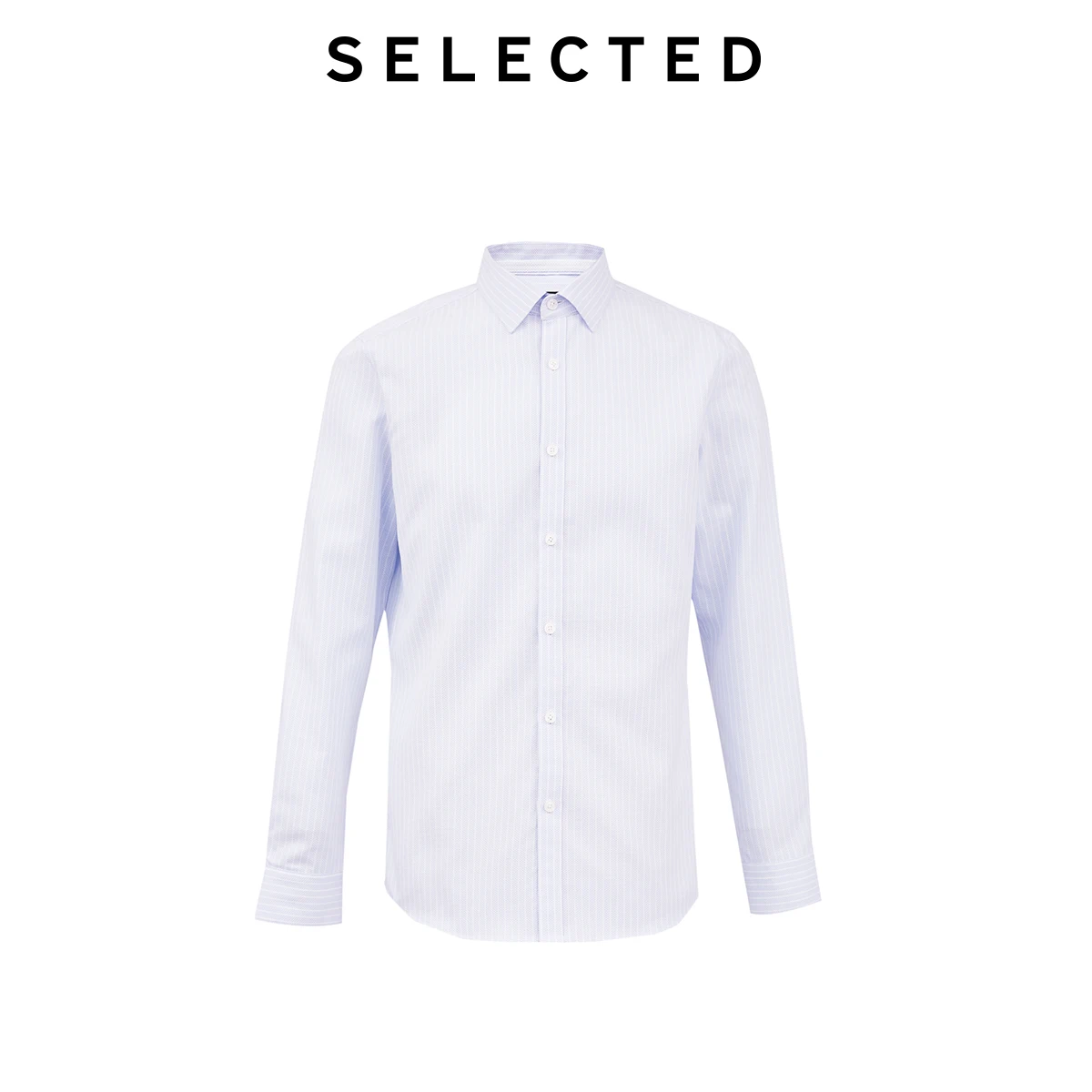 Мужская хлопковая рубашка в полоску, с длинным рукавом