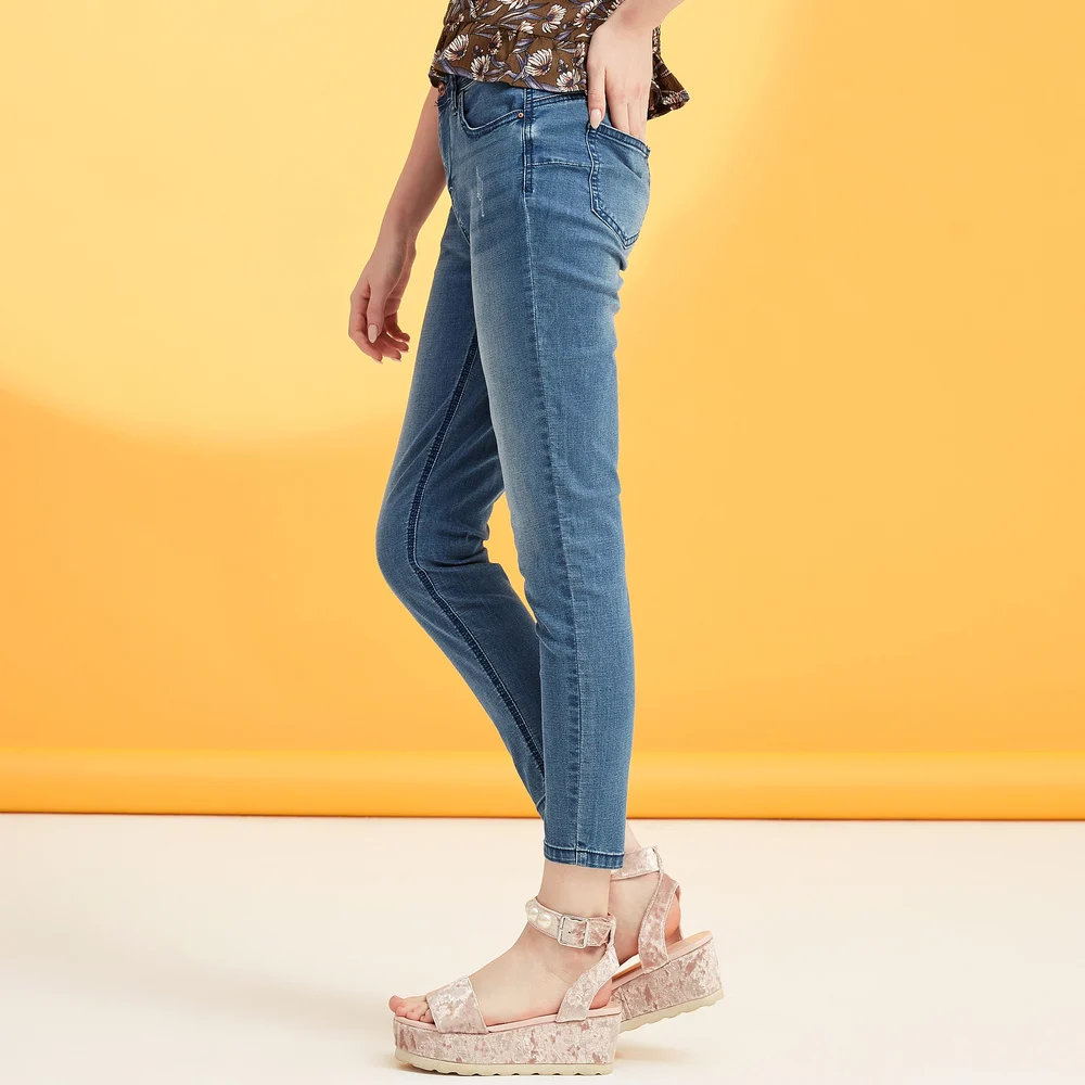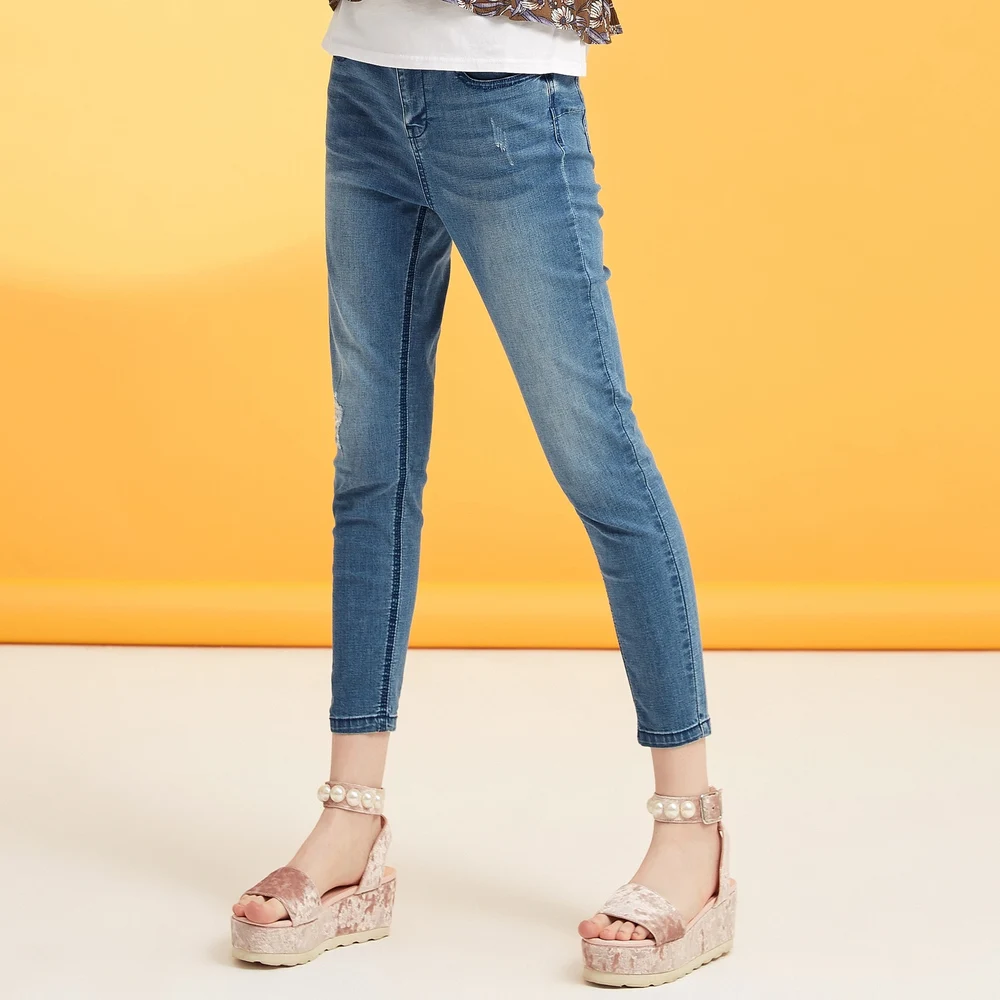 Женские узкие джинсы Metersbonwe, синие джинсовые брюки-карандаш с дырками и эластичной талией, 2019