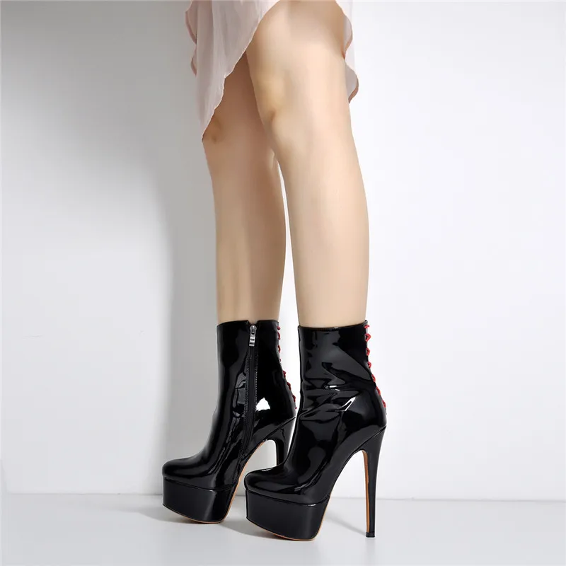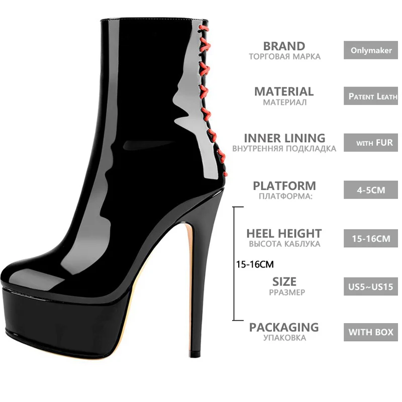 Женские закругленные узкие туфли Onlymaker, 16 см, черного цвета, с боковой молнией, ботильоны для вечеринки размер, большие размеры, US5 US15