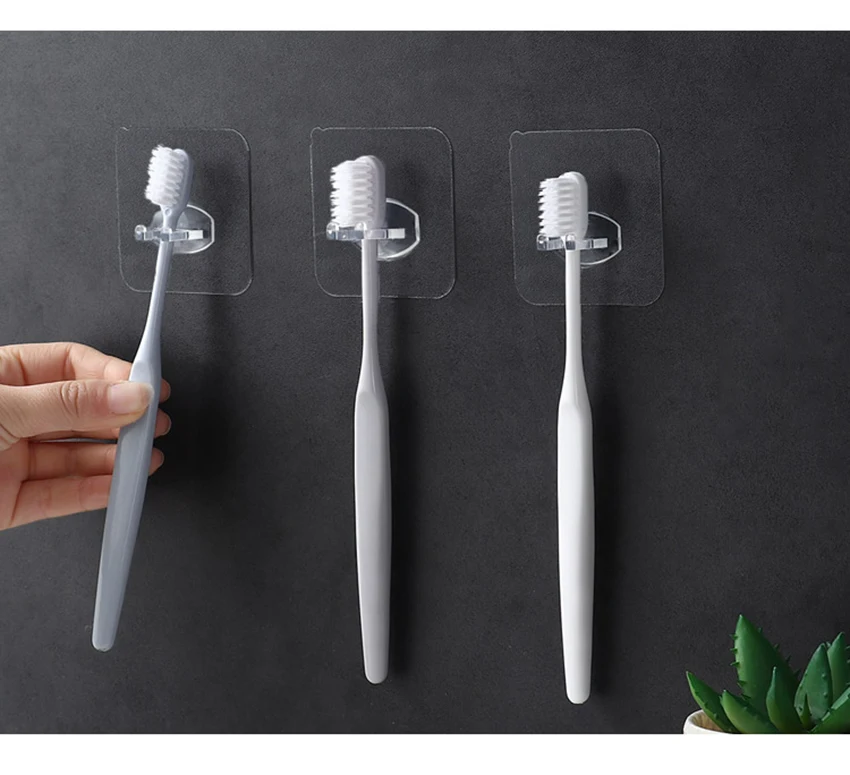 3 шт.лот прозрачный крючок без перфорации, пластиковый держатель для зубной щетки, самоклеящиеся крючки для установки на гладкой стене в душе, ванной комнате