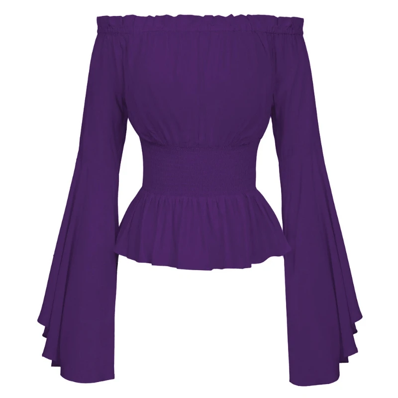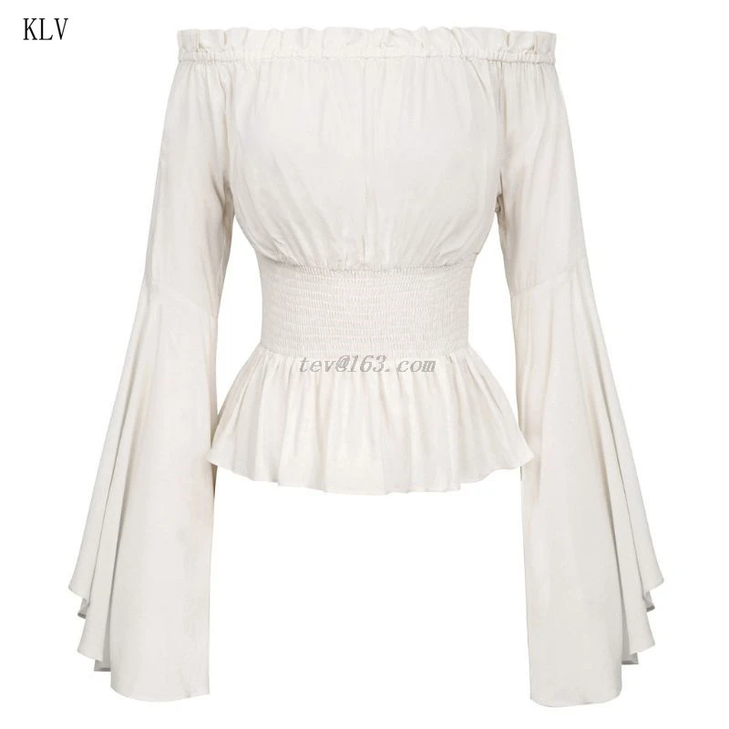 Женская блузка с расклешенными рукавами, корсетные топы с открытыми плечами и оборками, костюм для косплея в викторианском стиле, Пиратская рубашка, в готическом стиле, стиле ренессанс