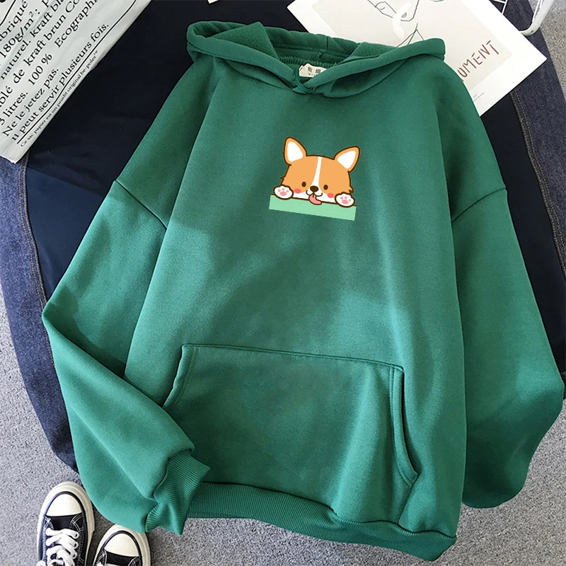 Осень-зима, милые толстовки с принтом корги, женская и мужская толстовка с длинным рукавом и капюшоном, пуловеры, повседневная спортивная одежда, женская уличная одежда