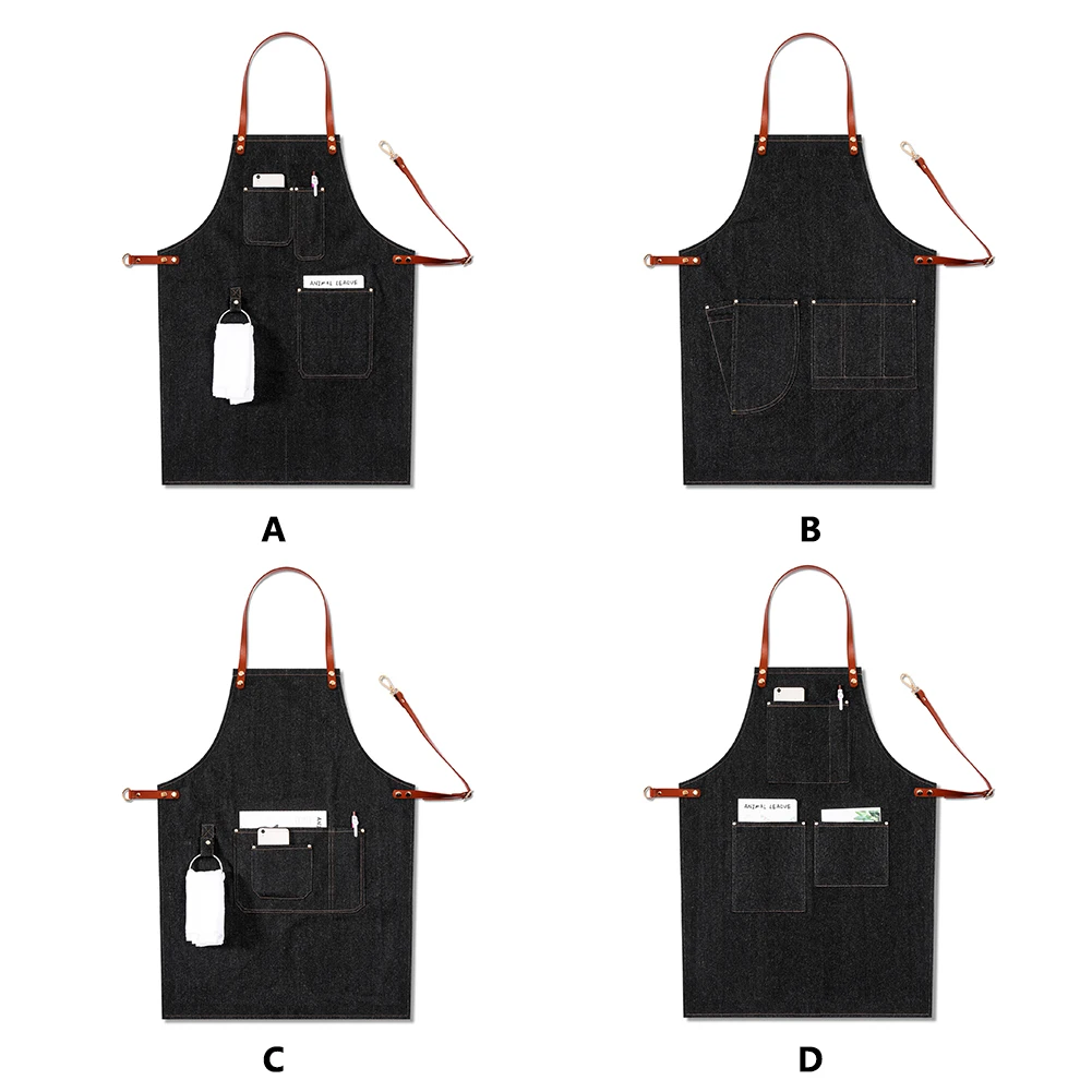 Нагрудник для шеф-повара и баристы, из денима, с несколькими карманами