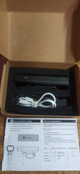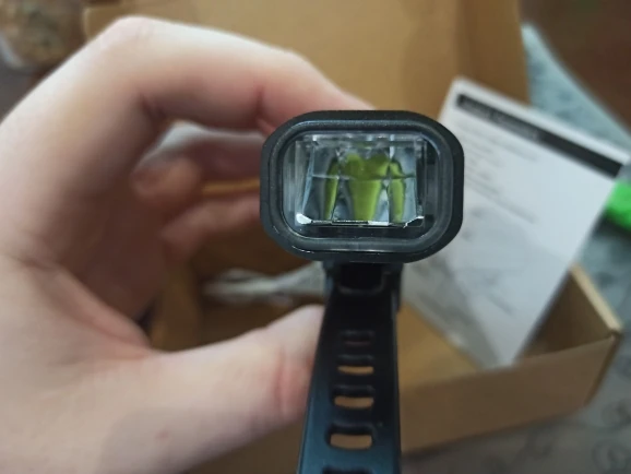 В целом всё хорошо и соответствует описанию. Но светильник похоже не влагозащищён и, к сожалению, фиксируется на руле без возможности хоть немного поворачиваться влево-вправо.