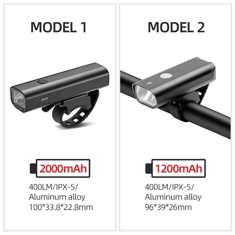 Фонасветильник велосипедный, 2000 мА ч, перезаряжаемый, USB, 400 лм