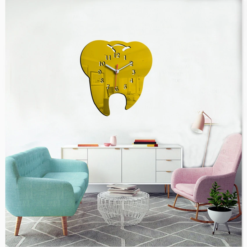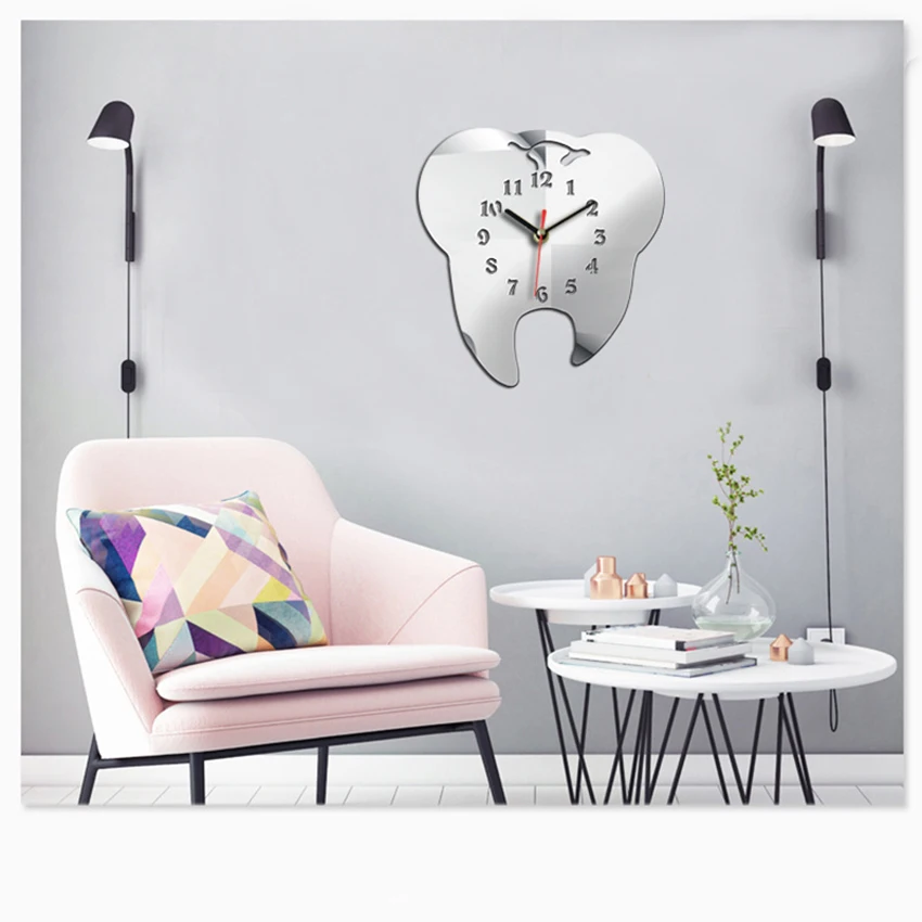 3D креативные настенные часы в форме зубов, украшение для зубов, бесшумные настенные часы с питанием от батареи, зеркальные настенные часы, стоматологический подарок