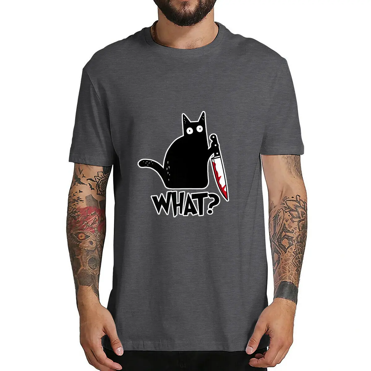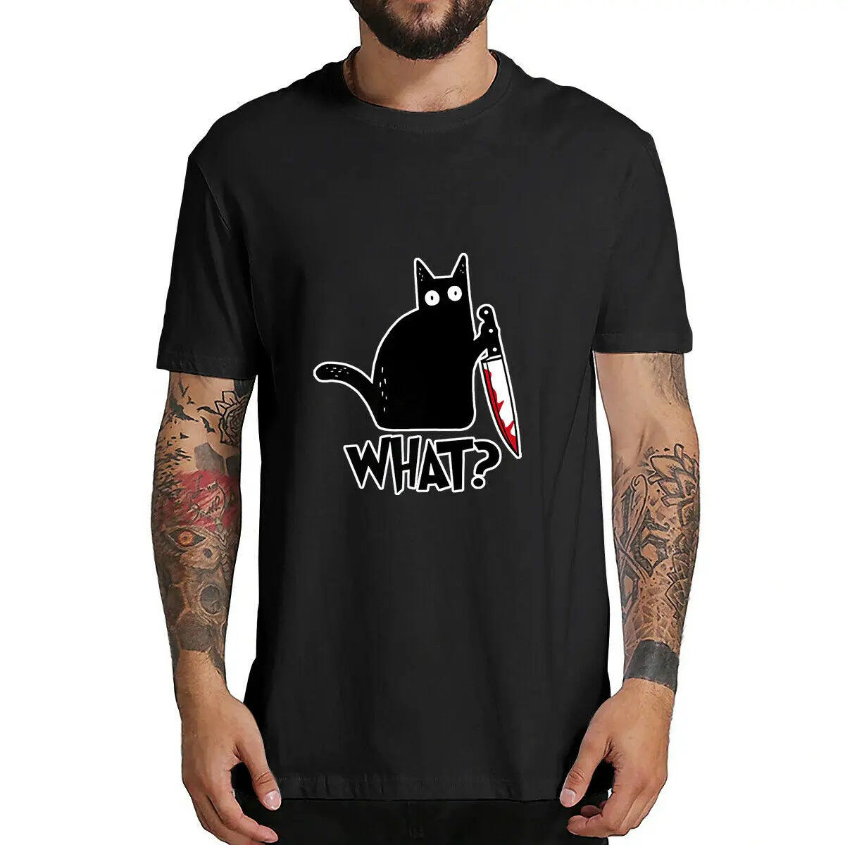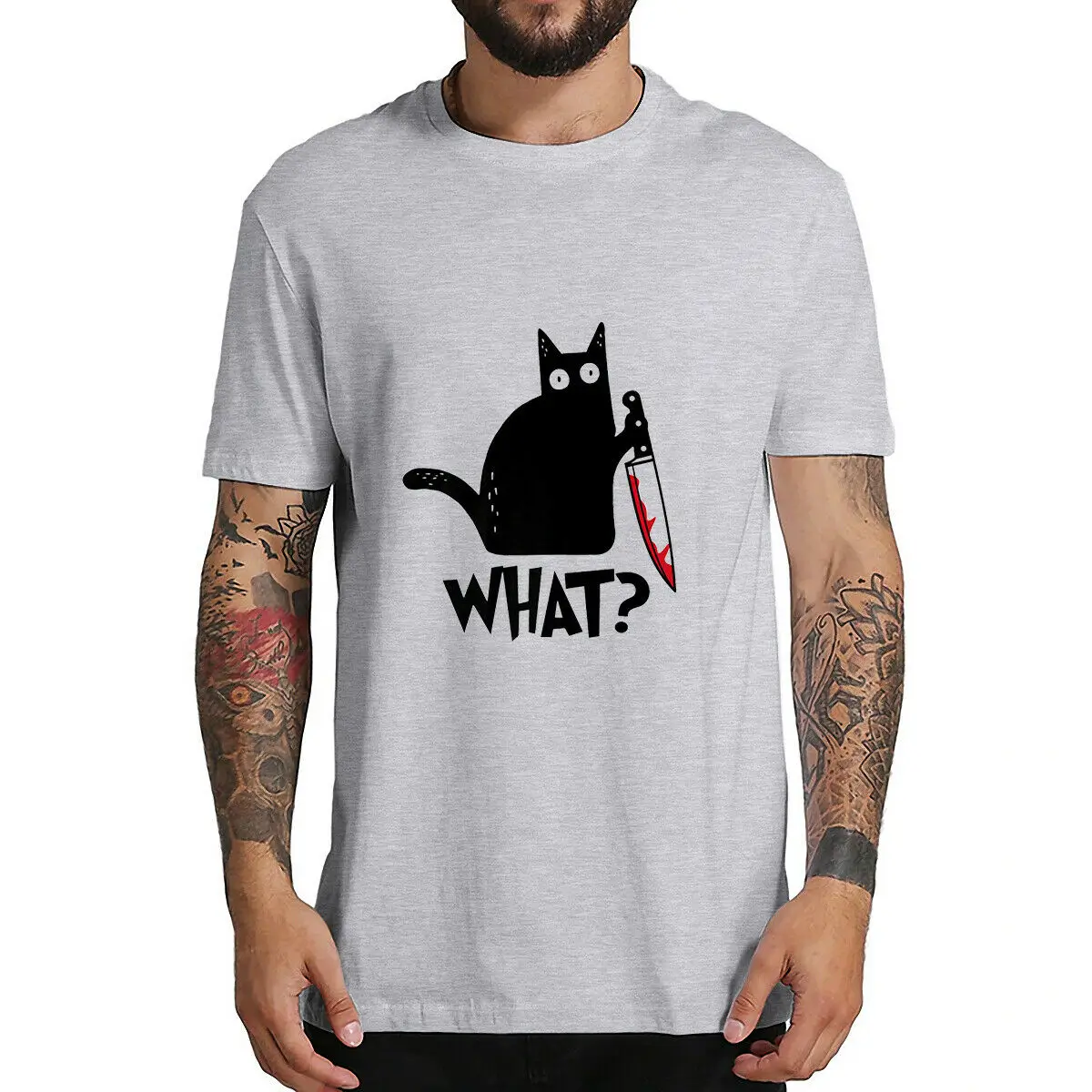 Футболка унисекс из хлопка, смешной подарок на Хэллоуин с котом убийцы и ножом