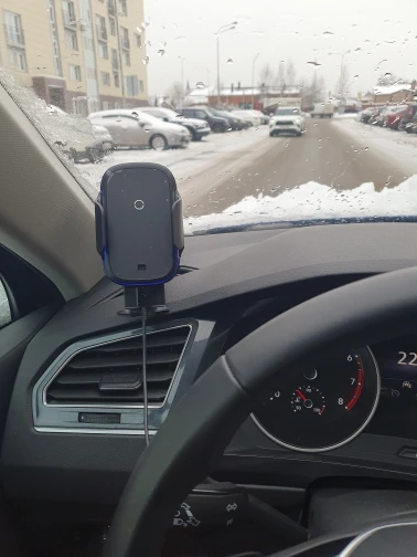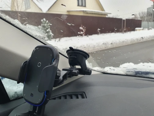 Стильно выглядит, добротный пластик. По сравнению с предыдущим устройством лучше держит телефон Самсунг Note 20 Ultra в толстом чехле. Крепление на решётку по первому впечатлению надёжное, при этом телефон достаточно далеко от дефлектора, надеюсь не должно быть проблем с перегревом при включённом отоплении. Беспроводная зарядка работает корректно, телефон не отключает её из-за перегрева, как периодически было на предыдущем устройстве.