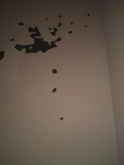 самое большое разочарование-вблизи выглядит очень топорно, наклейка запакована между двух липких слоев пленки, из-за этого простота переноса на стену страдает. наклеить аккуратно не смогла - все слои залипают и получается неаккуратно - выбросила.