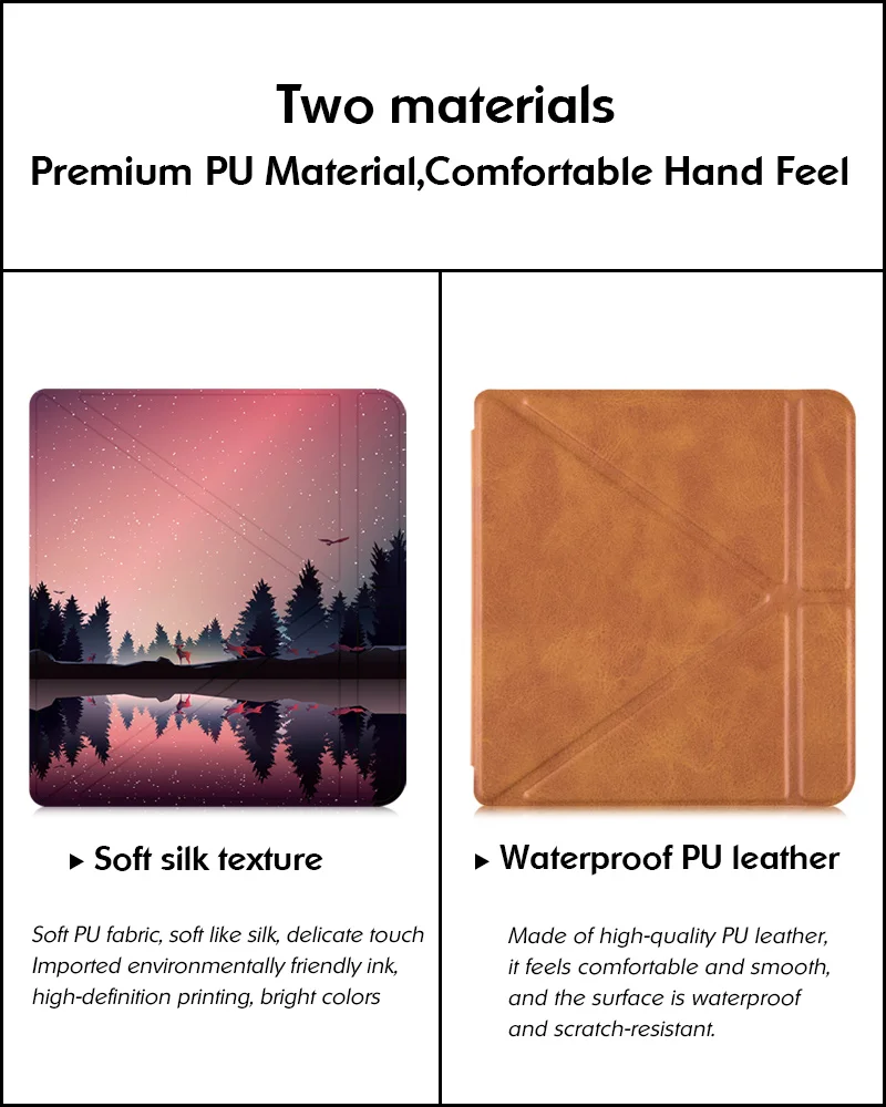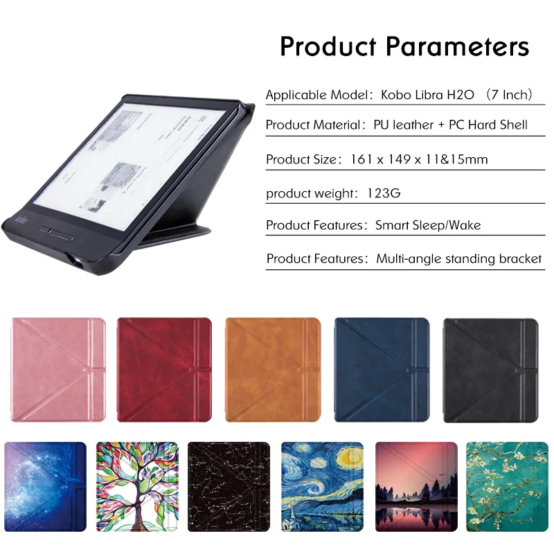 Very well made Kobo Libra H2O origamy premium cover by Bozhuorui. As nice as the original Rakuten Kobo cover. The coloration and texture of the cover is very nice to the touch, easy to look at and feels leathery. Works well, formed well, fits well, everything is very good. It even came with a small gift. Thanks to the seller. The colors in my pictures a bit off due to lighting.