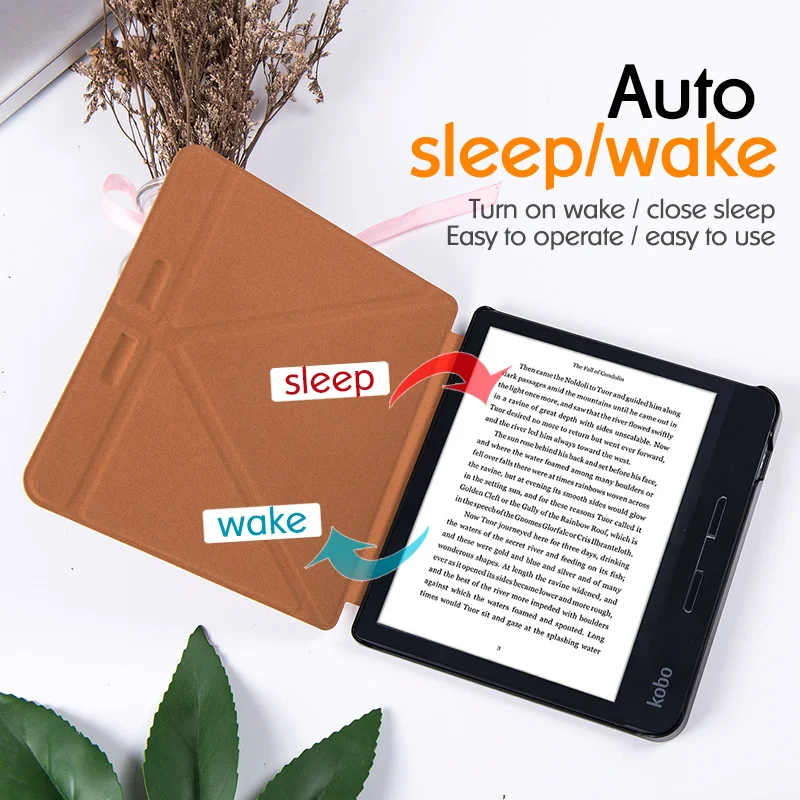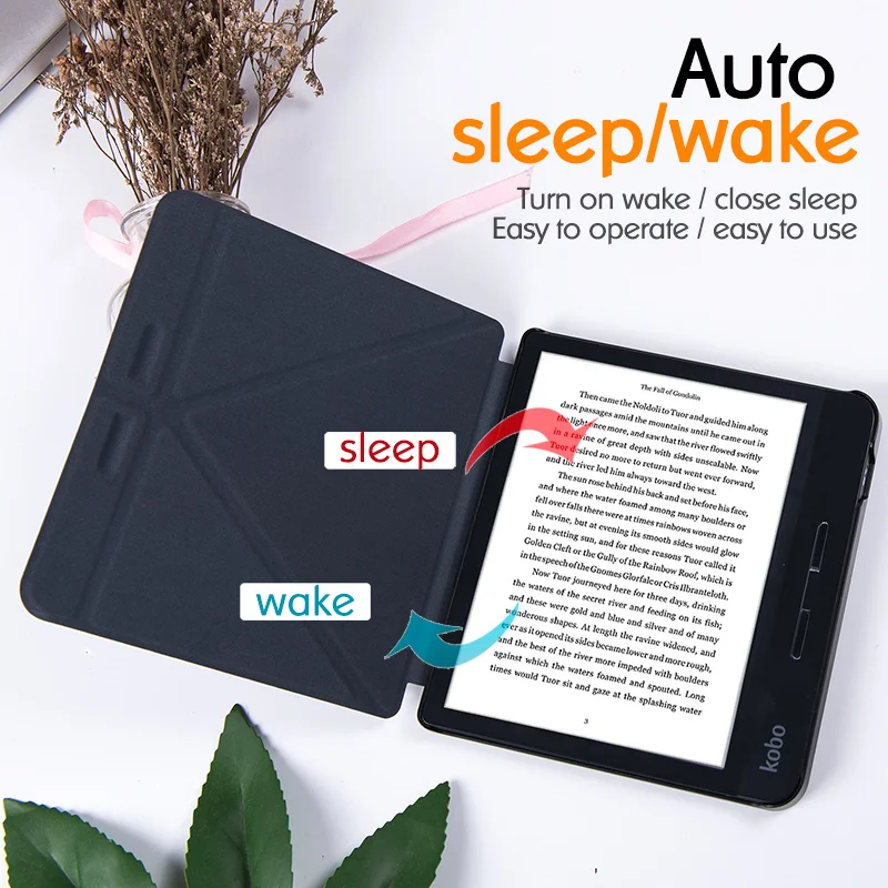Чехол для электронной книги BOZHUORUI Kobo Libra H2O (выпуск 2019 года, модель N873) -Чехол-подставка из высококачественной искусственной кожи для оригами с автоматическим пробуждением в спящем режиме