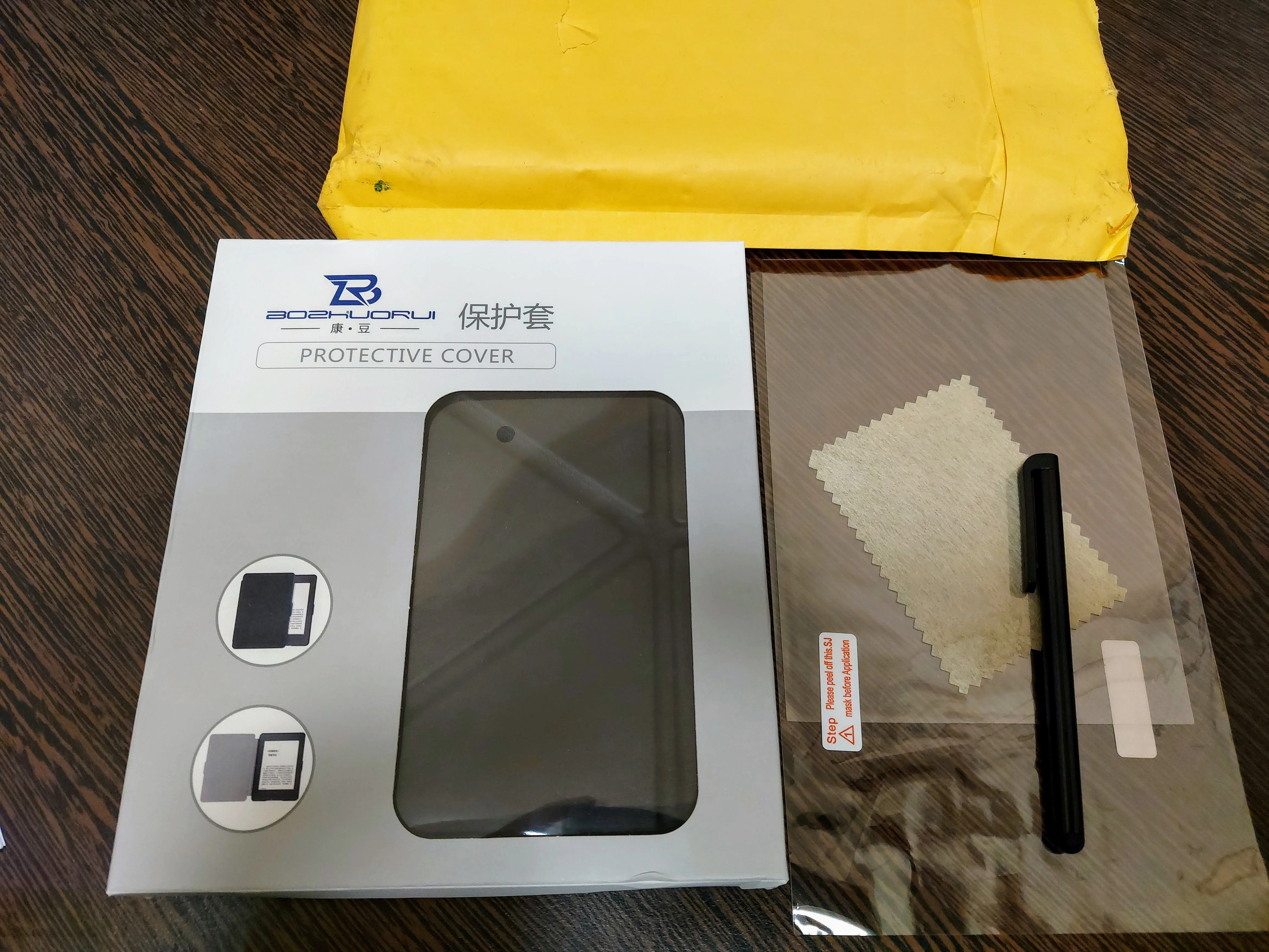 Доставка в Нидерланды занимает 8 дней. Качество кажется хорошим, Кобо засыпает, когда крышка закрыта. Не уверен, что я буду использовать защитную пленку для экрана, это делает экран слишком блестящим.