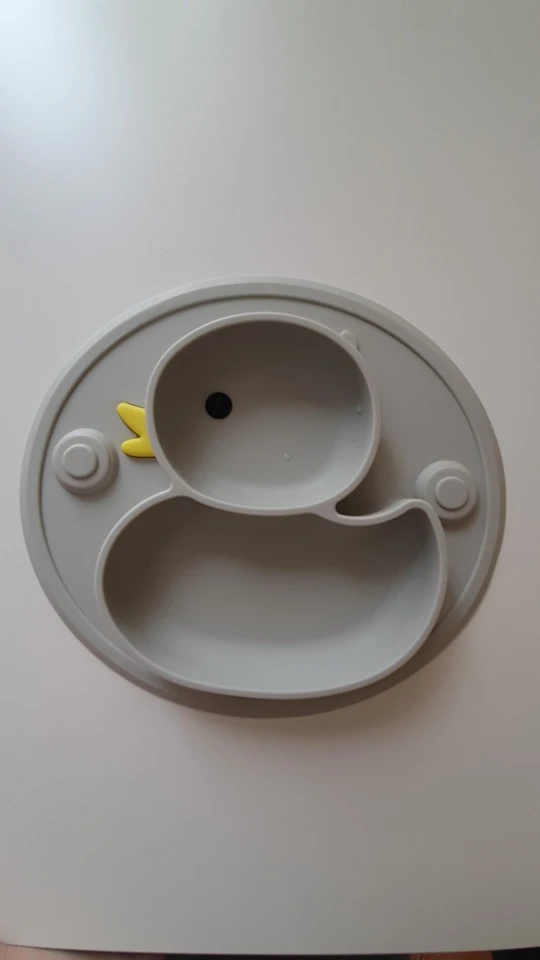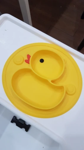 Отличная тарелочка! Упакована качественно, пришла в СПб быстро. Можно мыть в посудомоечной машине, греть в микроволновке. Присоски держат хорошо, сама не отклеивается. Отлично помещается даже на столик стула из Икеи.