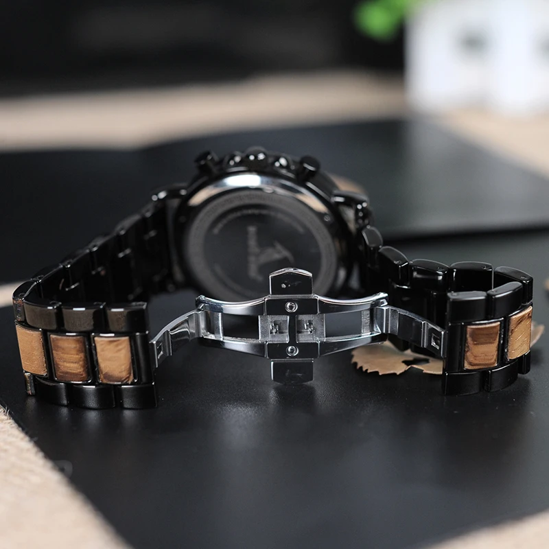 Часы BOBO BIRD P09 из дерева и нержавеющей стали, мужские наручные ...