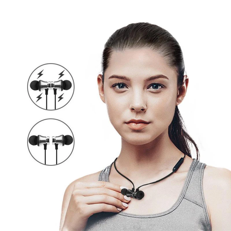 Магнитные Спортивные Беспроводные стерео наушники BT4.1 с ушным крючком и микрофоном, наушники-вкладыши, басовая гарнитура для телефона