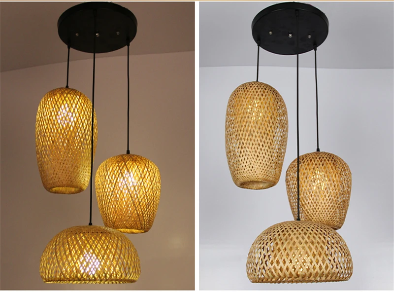 Китайский подвесной светильник ручной вязки из бамбука, для ресторана, Кафа, лофта, подвесной светильник, домашний декор, бамбуковые светодиодные светильники