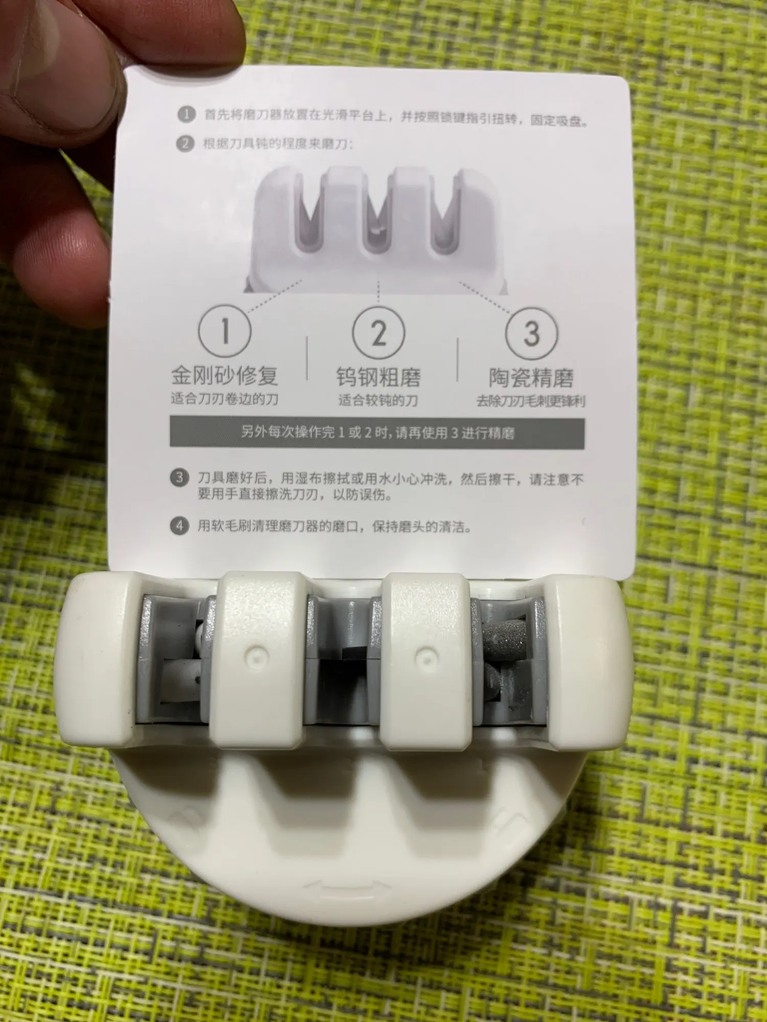 1я точилка- снимает часть метала, после чего остаются заусенцы, которые снимаются на 2й точилке, а 3я точилка доводит остроту ножа. В применении проста, товар соответствует описанию, продавца рекомендую, в Украину на 2 недели пришла посылка Новой почтой