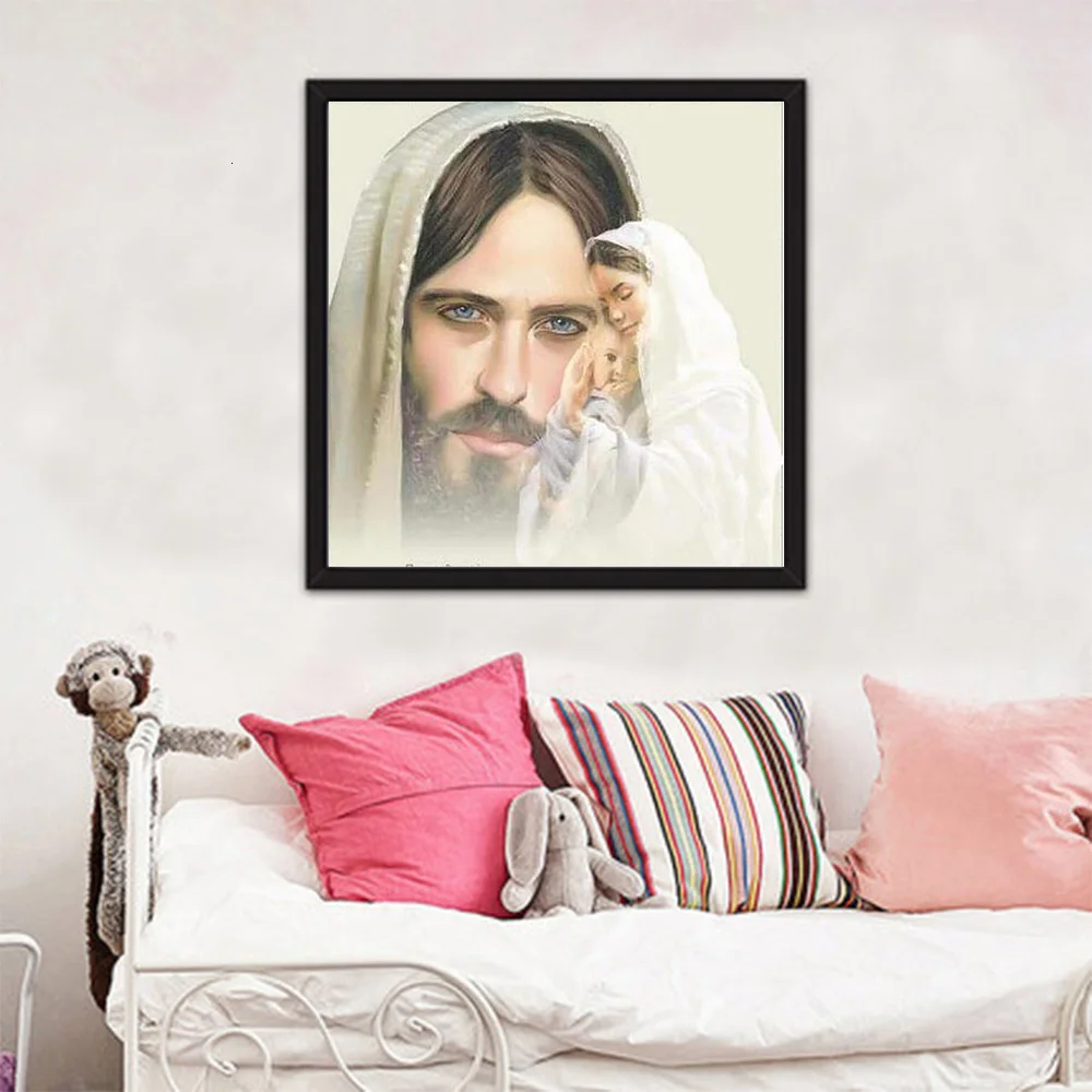 HUACAN DIY Алмазная вышивка Иисус наклейки на стену подарок ручной работы круглая дрель картины бисером комплект мозаика Живопись