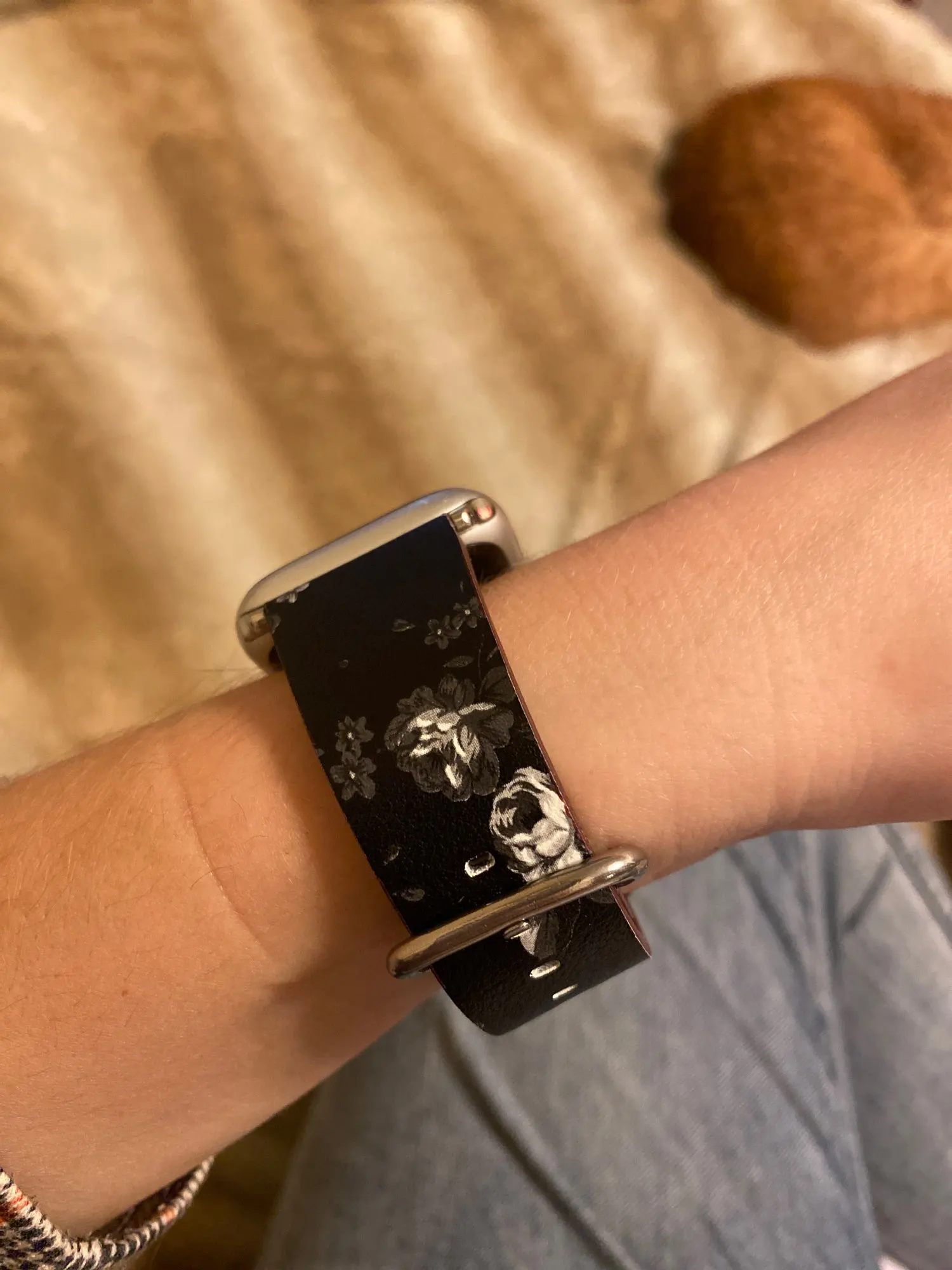 Кожаный ремешок для часов с цветочным рисунком для Apple Watch Seri...