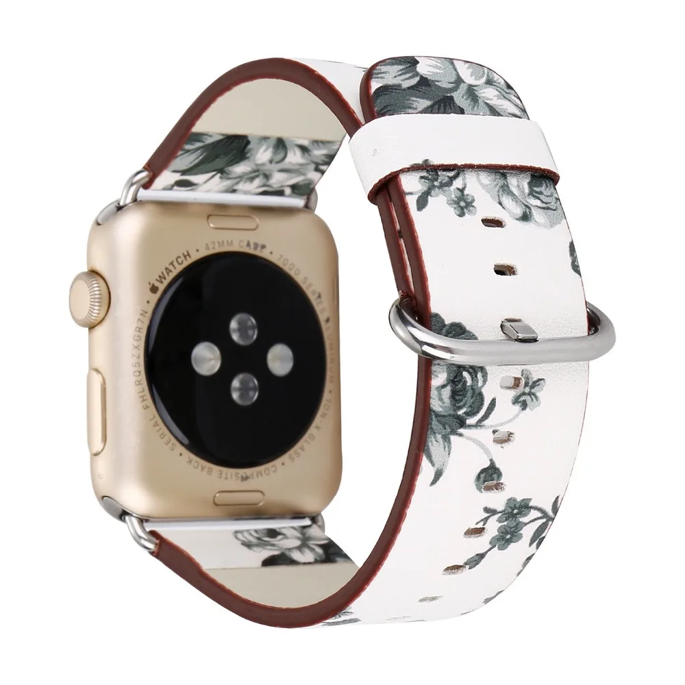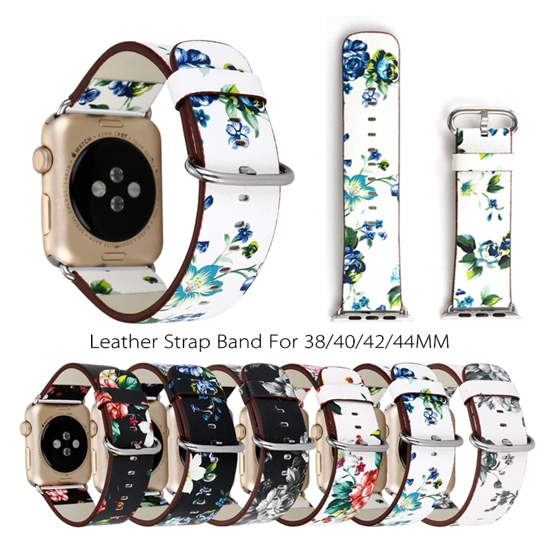 Кожаный ремешок с цветочным принтом для Apple Watch 4, 3, 2, 1, сме...