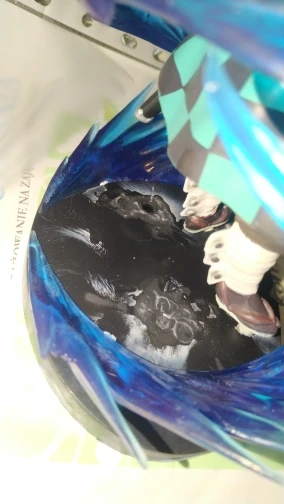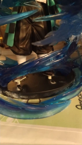 Подставка пришла от другой фигуры,дырки для ног шире чем сами ноги у героя,и еще грязная вся,герой наш просто стоит облокотившись на волны.Поэтому продавец вернул 50% стоимости.Фигура очень сложно собирается и она очень хрупкая,собрать оставить и не дотрагиваться к ней.