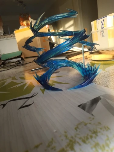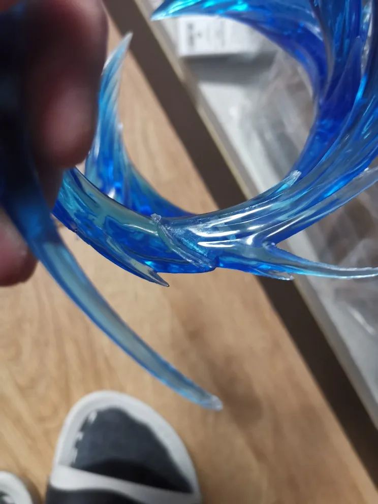 Фигурка понравилось , все было запаковано хорошо . Когда получил фигурку , то думал , что быстро соберу , но нет , пришлось чуть помучиться . Также сами волны не закреплены , я просто лежат , но можно в принципе закрепить их прозрачным клеем . В общем , за свою цену очень хорошая фигурка . Также , на подставке дырки были немного больше , чем ширина ног у фигурки , но ноги можно чуть раздвинуть , так что не Бойтесь , только делаете это аккуратно .