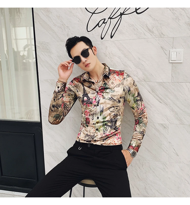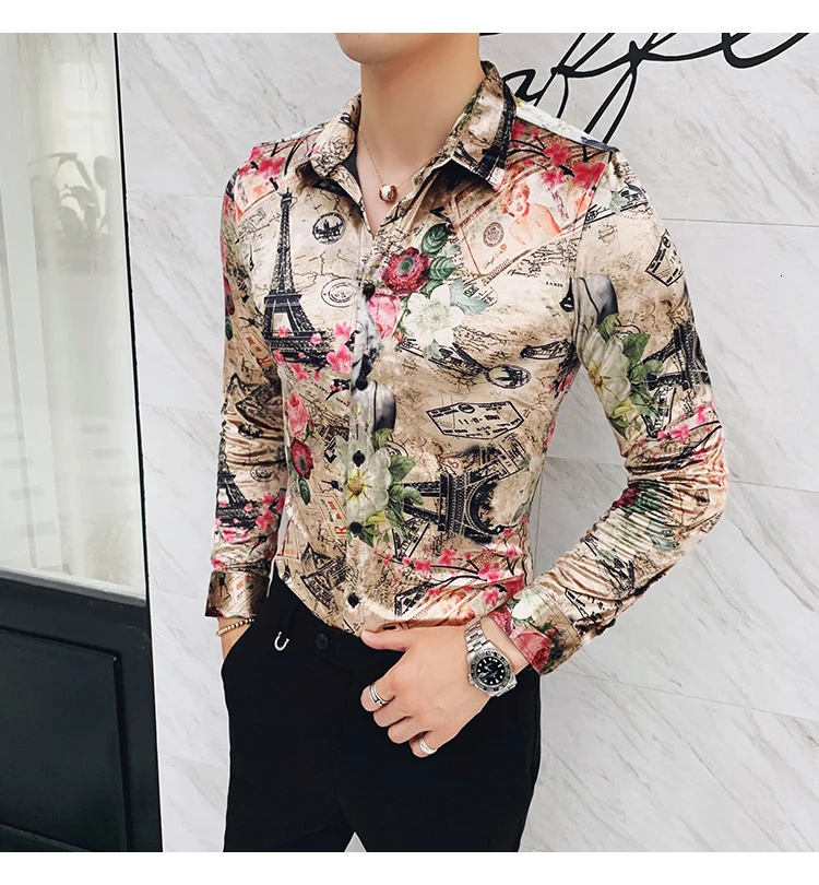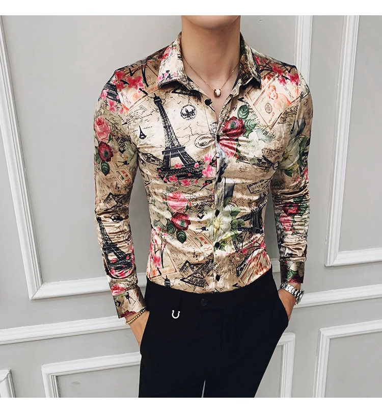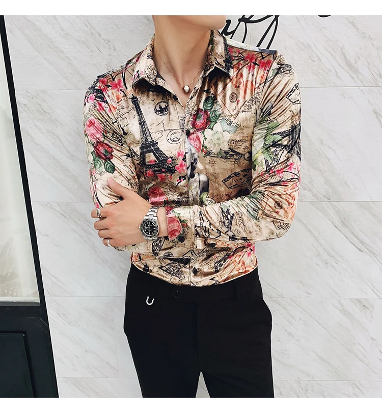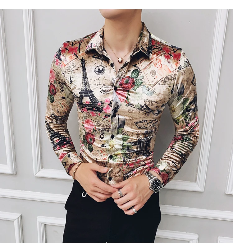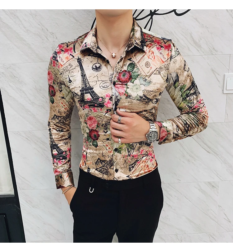 Повседневные Бархатные рубашки в стиле барокко, мужские шелковые рубашки, фланелевая модная одежда с принтом, зимняя стильная одежда Вечерние, новые рубашки с длинными рукавами