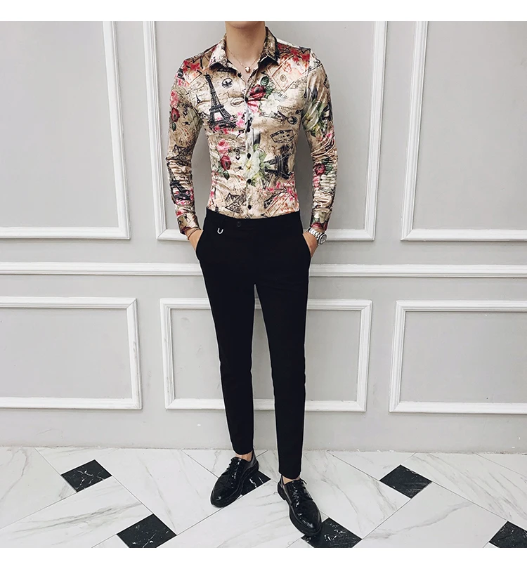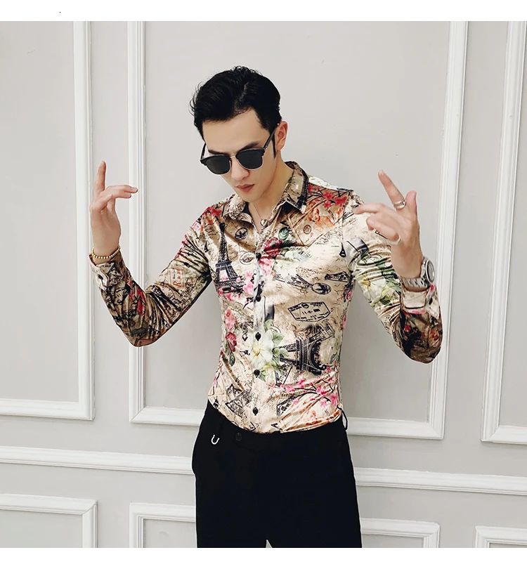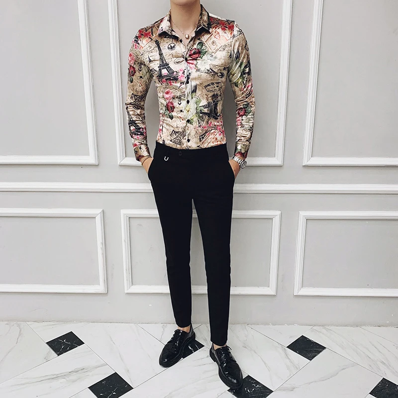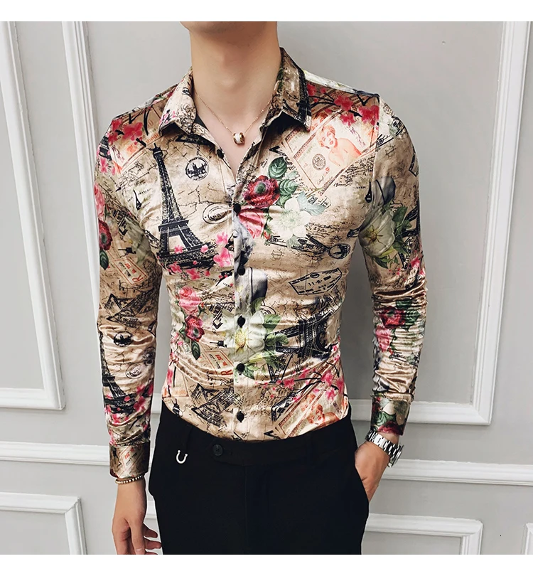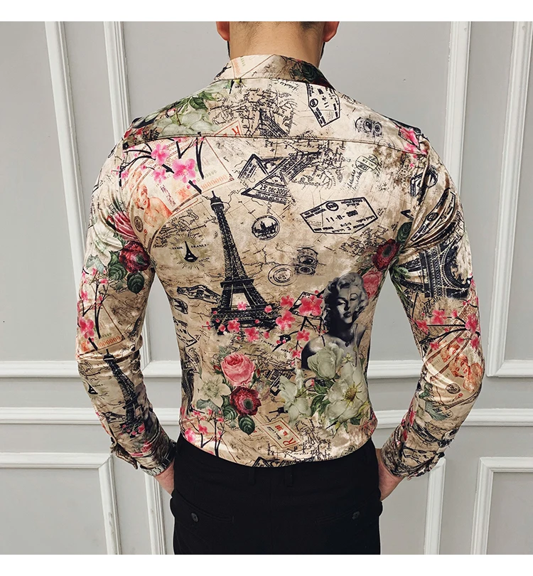 Повседневные Бархатные рубашки в стиле барокко, мужские шелковые рубашки, фланелевая модная одежда с принтом, зимняя стильная одежда Вечерние, новые рубашки с длинными рукавами