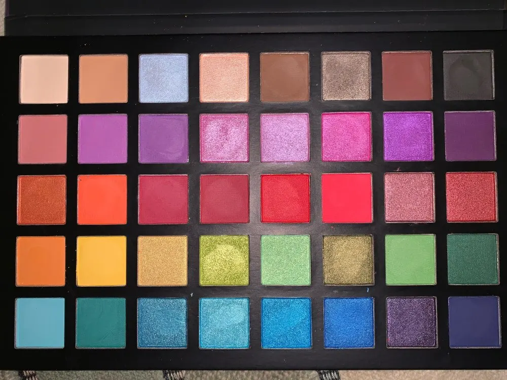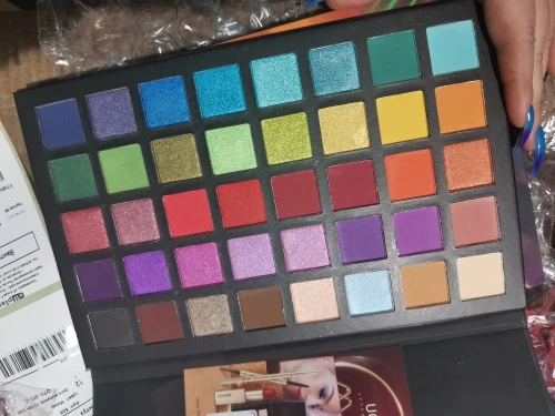 Хотелось бы начать с ОЧЕНЬ быстрой доставки, заказала на распродаже 11.11 , а сегодня я уже получила свою заветную посылочку. Упакована в стретч- пакет аж с тремя слоями пупырки !! Перейдём к самой палетке. Вроде бы написано что 40 цветов, или я не правильно поняла описание, или немного слукавили.. На деле 32 достаточно ярких цвета, из них 19 матовых остальные сатиновые. Сама палетка выглядит презентабельно. Матовая, приятная на ощупь. Крышка на магните. Запах отсутствует. Тени пылят конечно, но не сильно. Пигментация достаточно хорошая, особенно если класть их на базу или на консилер. Продавец приветливый и общительный.. Так что если вы решили заказать именно их, берите!