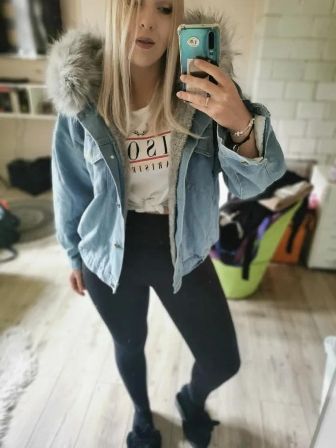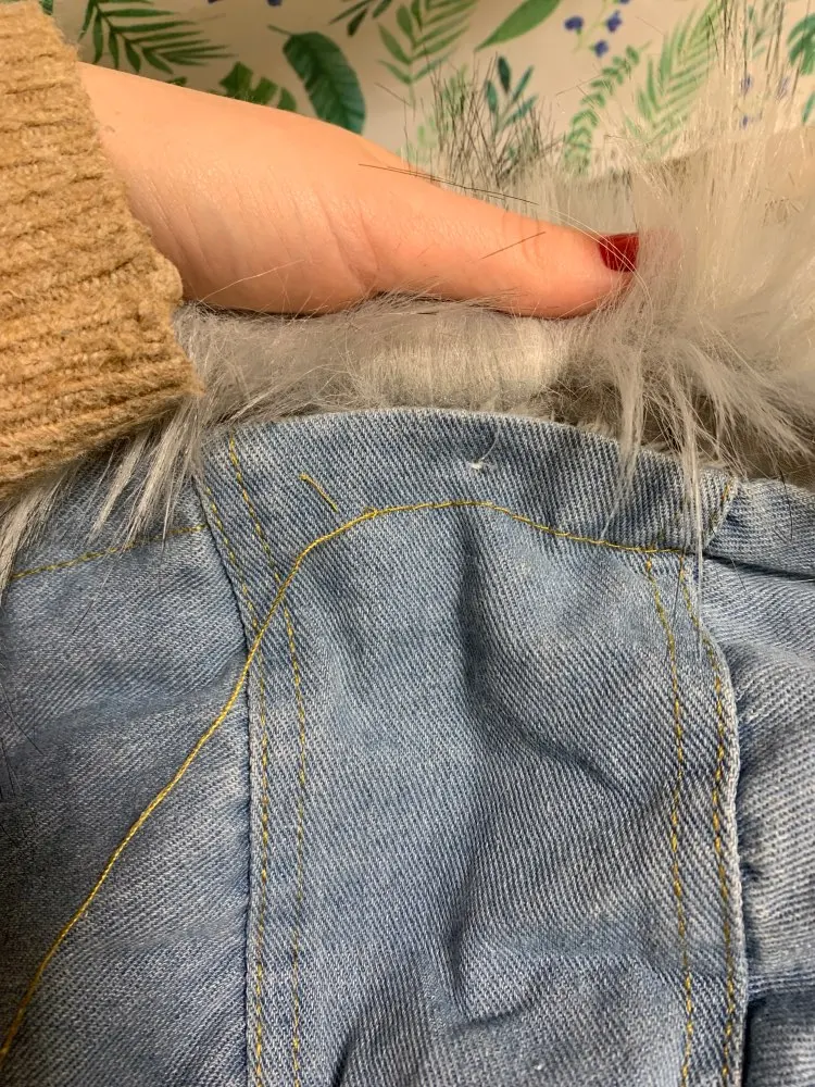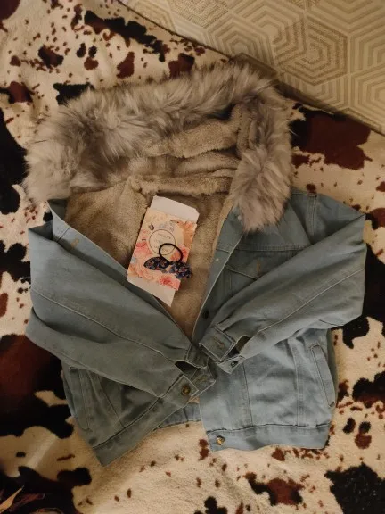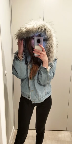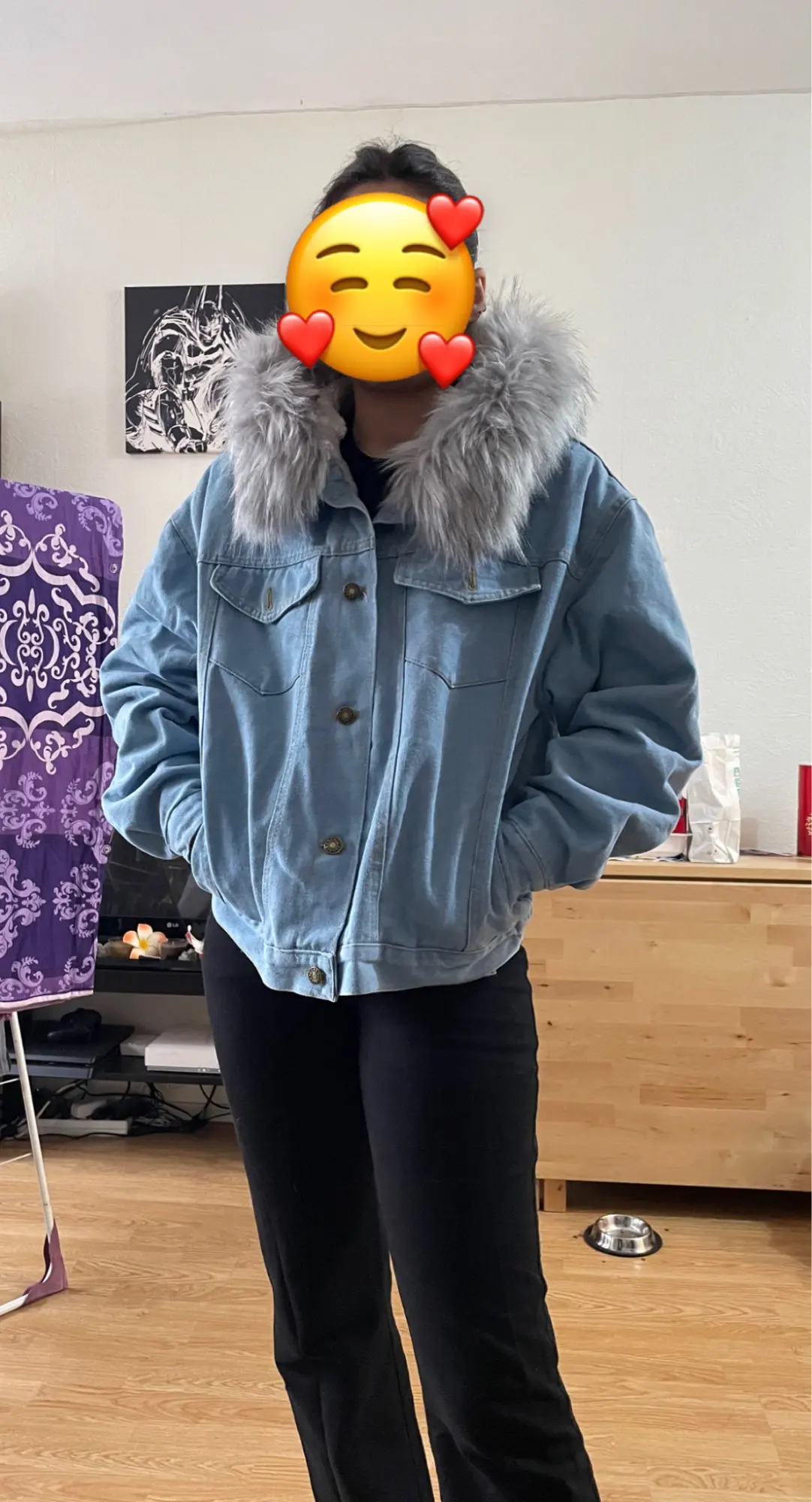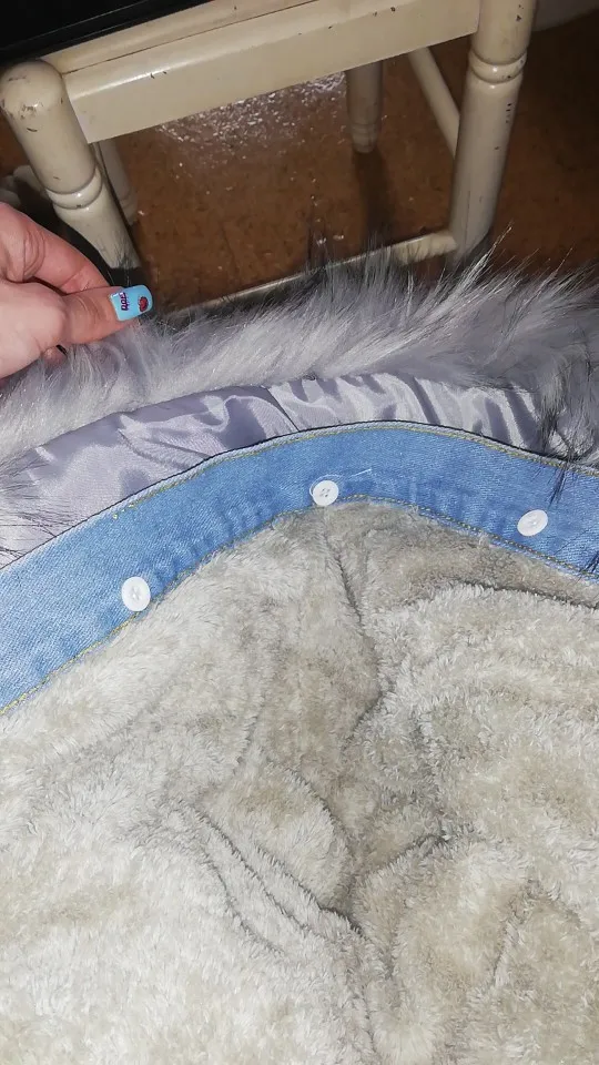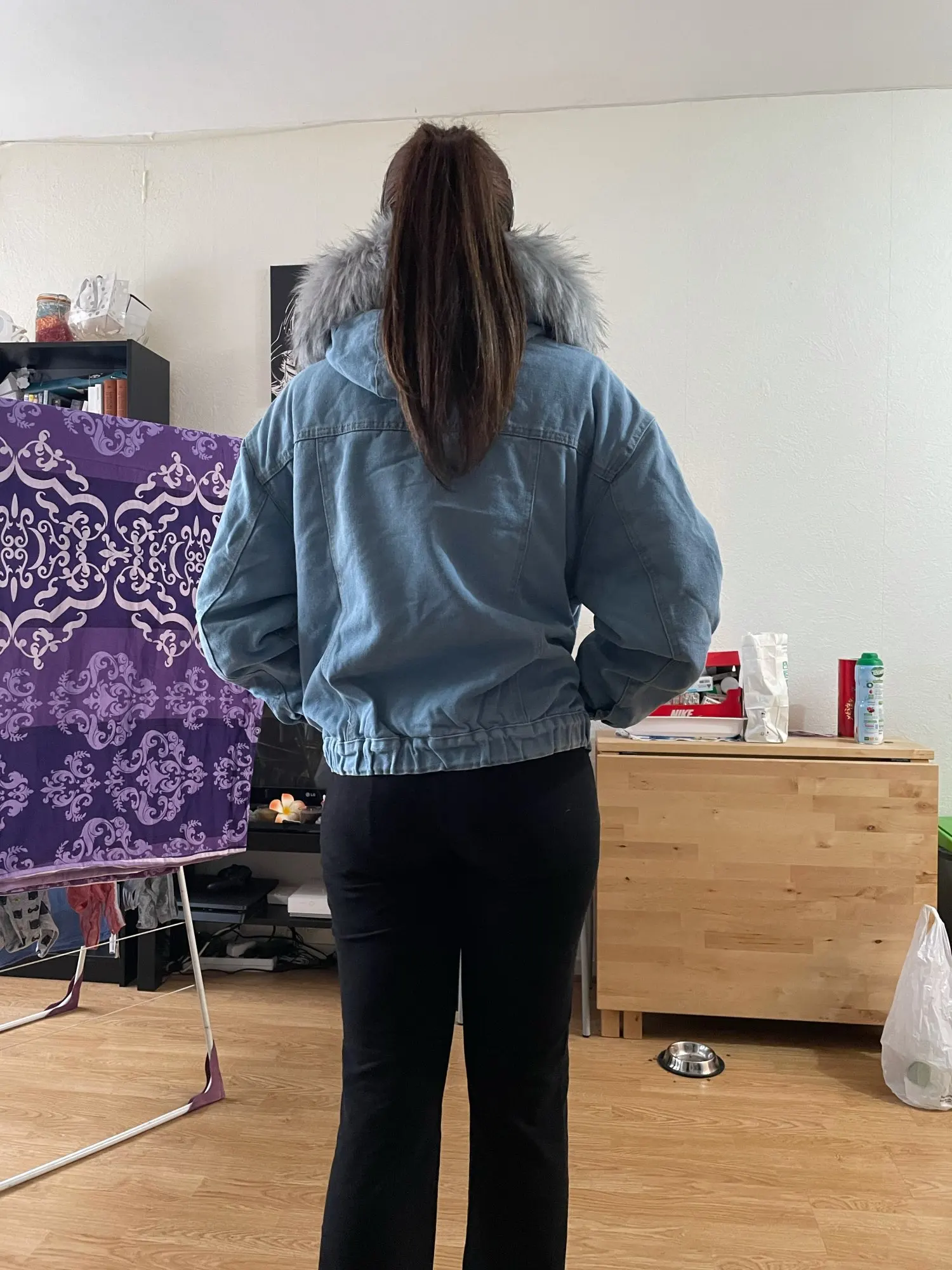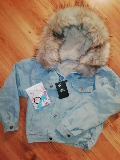 Посылка прибыла менее одного месяца. В упаковке была куртка, лента для волос и листовка. Я заказал размер S, обычно я ношу размер S/M, и он идеален. Материал-джинсы, я думаю. Мех можно прикрепить или открепить-Вы сами решите. Есть один ряд пуговиц-я думаю, что лучше иметь рядом, но я прикрепил мех с обеих сторон в один ряд. Цвет внутри немного отличается от меха (мех прикреплен к капюшону серый), но я не против. Рукава не имеют меха. Теплая куртка и очень большой капюшон. Я не уверен, что это хороший продукт для зимы, но для осени точно☺②