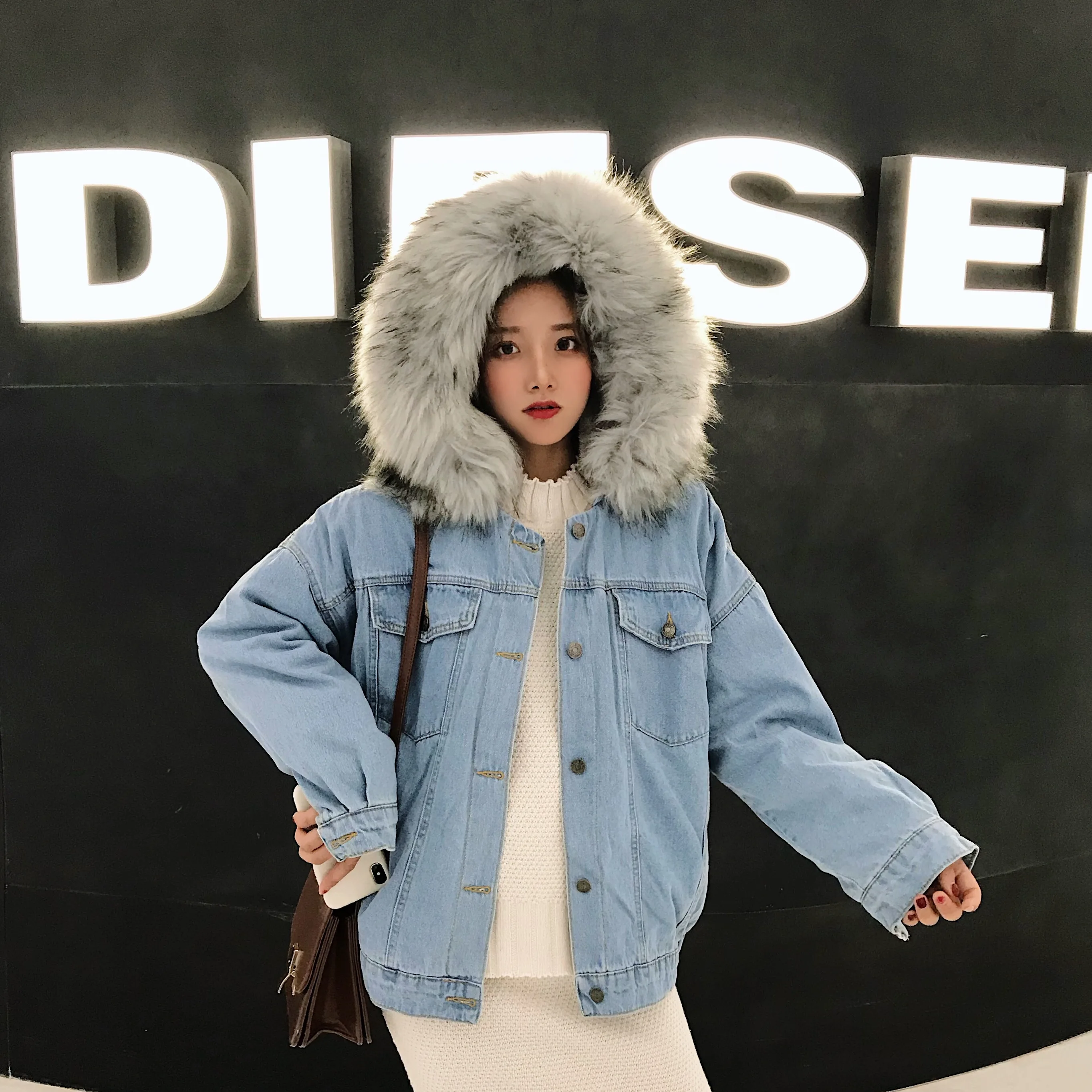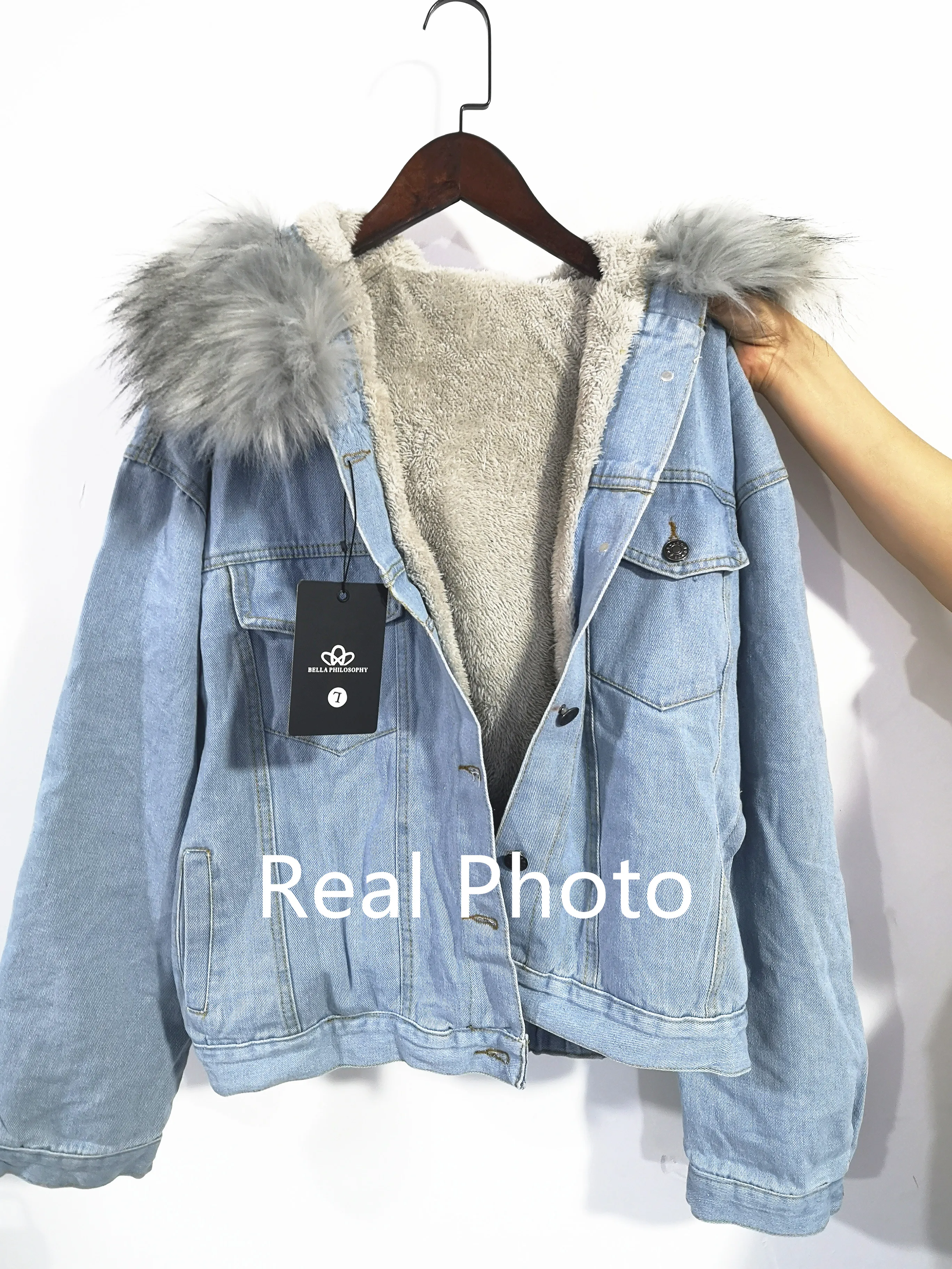 Женская джинсовая куртка Bella Philosophy, с меховым капюшоном, однобортная, зимняя