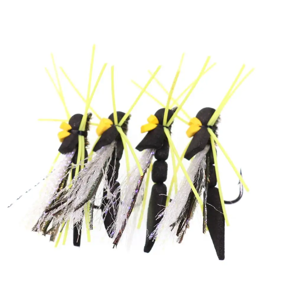Bimoo 4 шт. черный бункер для сухой рыбалки, плавающие пенные мухи, Радужная форель, окунь, Нахлыст, мушки, приманки, размер #4