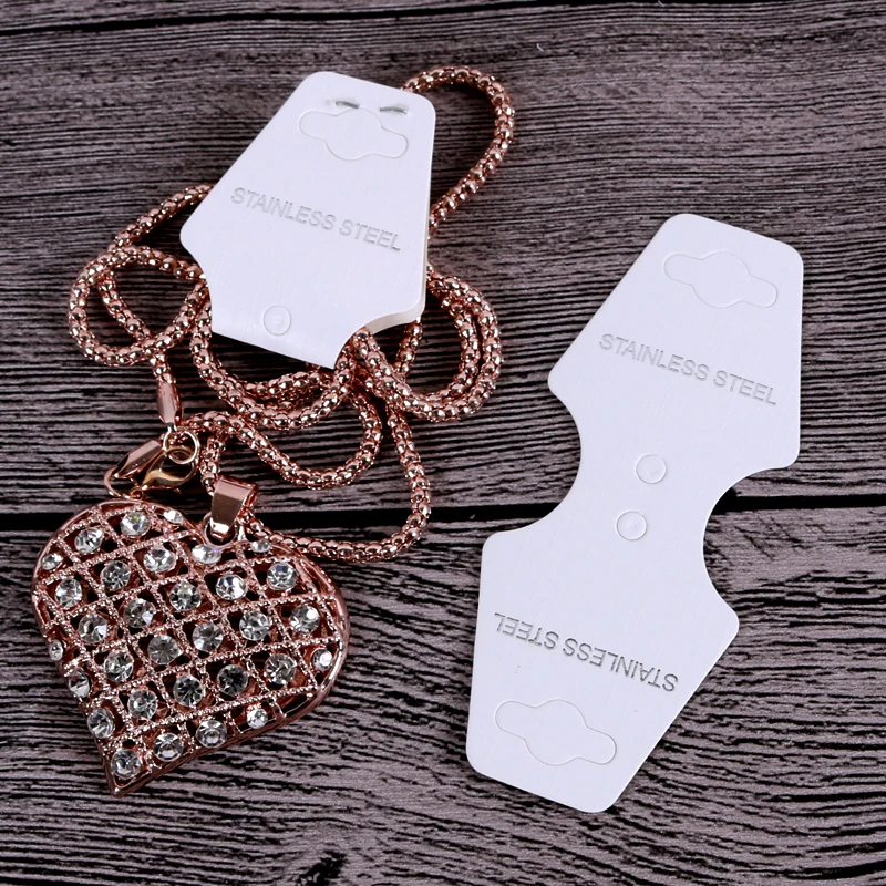 4x9,5 см 100 шт.лот, белые ювелирные карты из нержавеющей стали с принтом для ювелирных изделий, ожерелья, браслета, шпильки для волос, упаковочные подвесные бирки, карты