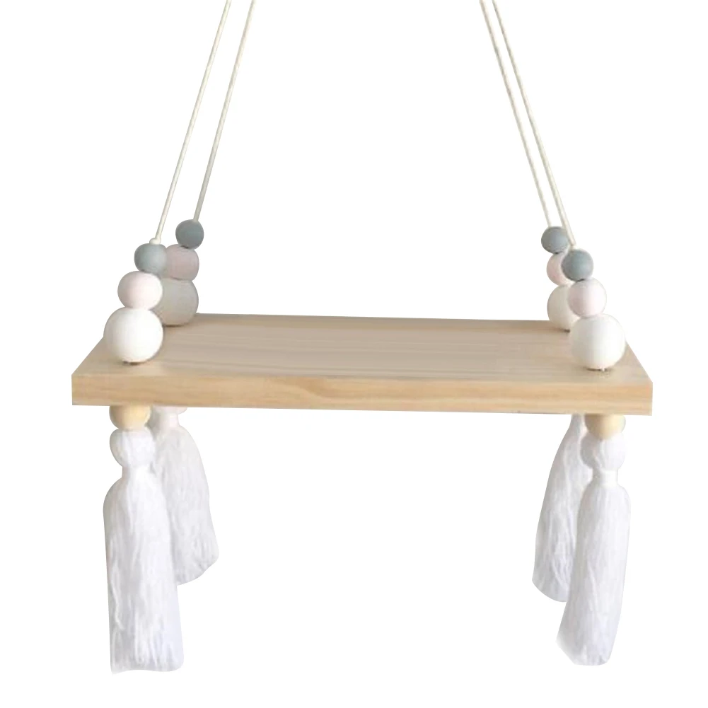 Деревянная доска, бусины, кисточка, полка для хранения, держатель для спальни, дома, Настенный декор